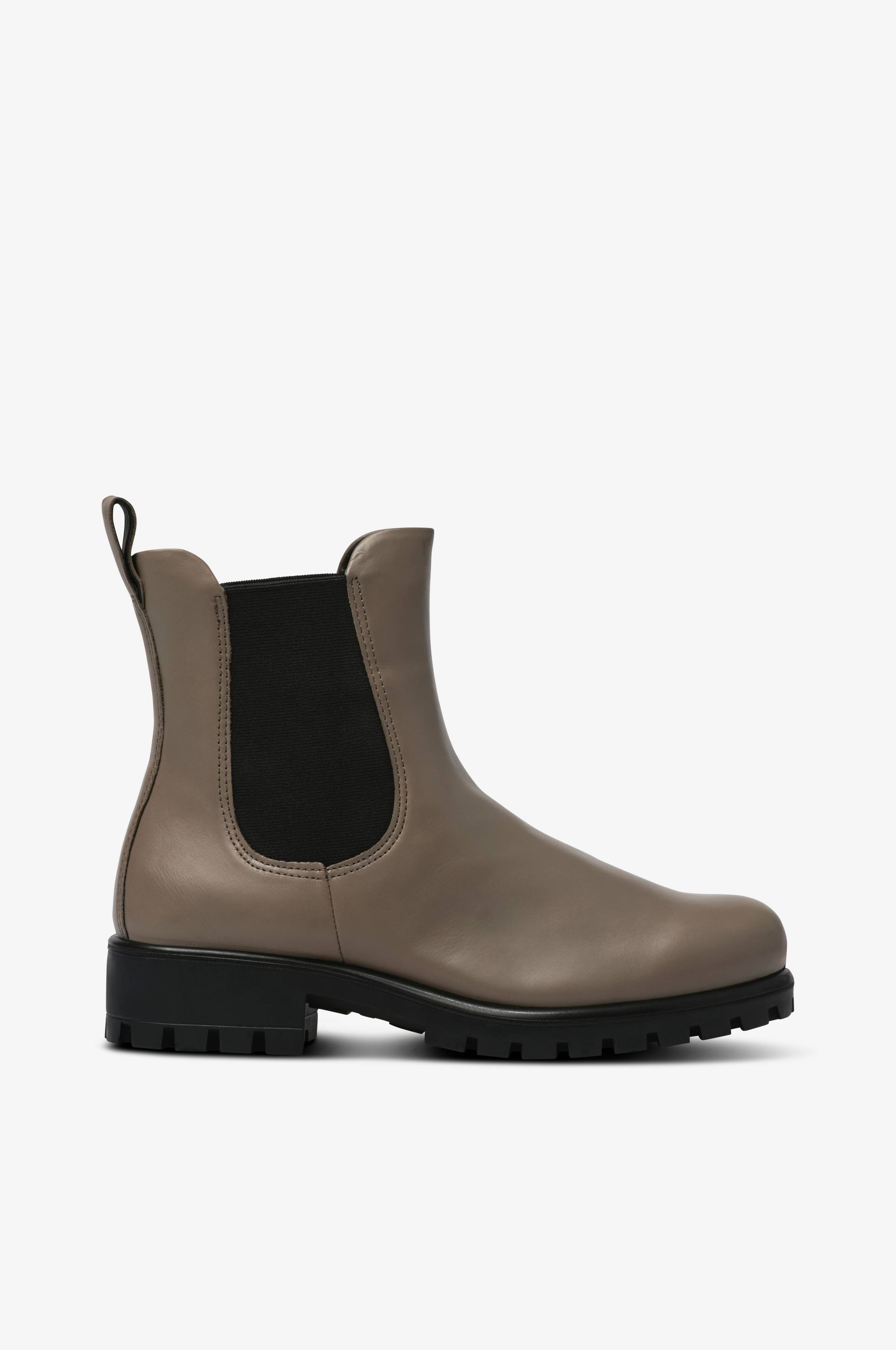 Boots i glat skind med elastikpaneler på skaftets sider. Behandlet med vandafvisende ECCO HYDROMAX. For af skind og tekstil. Udtagelig, skindbetrukket og formpresset indersål. Den lette sål giver dæmpning og fleksibilitet takket være den innovative ECCO FLUIDFORM Direct Comfort-teknologi. Grovmønstret ydersål af gummi med ECCO TRAYTECH-teknologi som giver stabilitet og greb. Hælhøjde ca. 4 cm. Skafthøjde 14 cm.