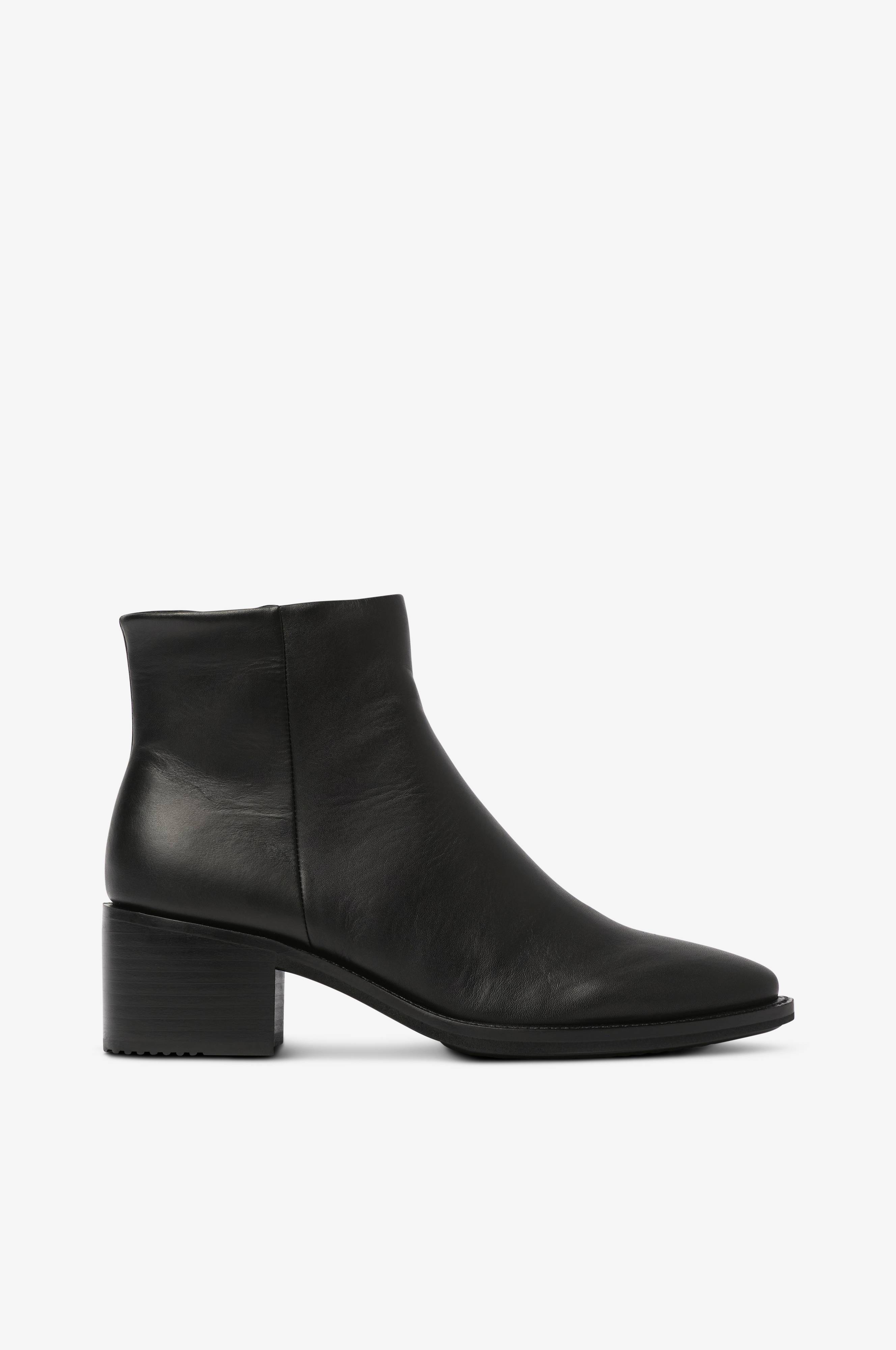 Stilrene boots med spids tå og blokhæl. I blødt, fint skind. Lynlås på skaftets inderside. Let sål med dæmpning og fleksiblitet takket være den innovative Ecco FluidForm Direct-teknologi. Skafthøjde ca. 11 cm, hælhøjde ca. 5,5 cm.