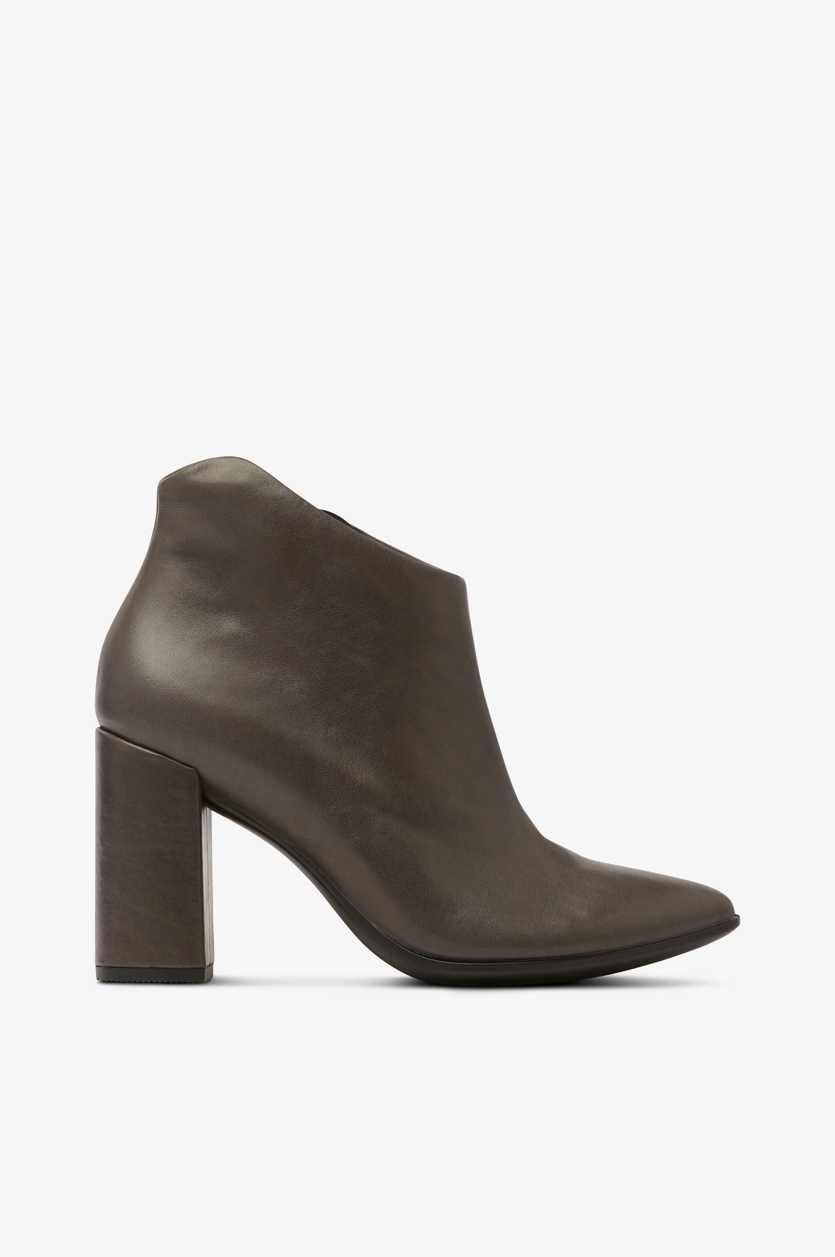 Boots Shape 75 Pointy Block fra Ecco med flot, skråt skåret skaft med lynlås på indersiden. Spids tå og bred hæl som er afrundet på den ene side og lige på den anden. Overdel i blødt skind fra Eccos egne garverier. Anatomisk formet fodseng omslutter hælen og foden for optimal støtte og komfort. Hælhøjde 9 cm, skafthøjde bagpå 10 cm.
