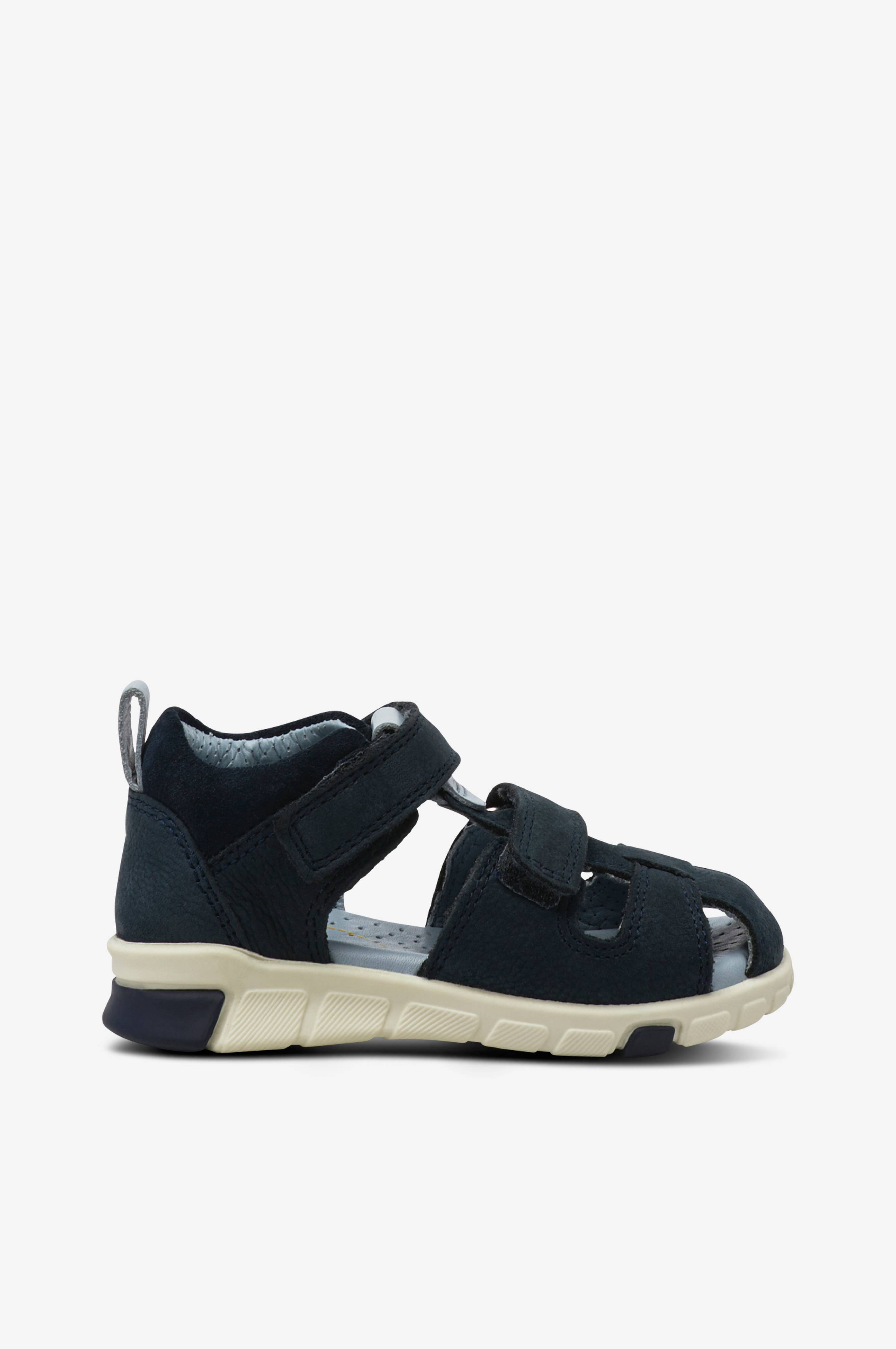 Store børns sandaler med justering. Velegnet til brede fødder med høj instride. God sål og stabil fuld hætte.