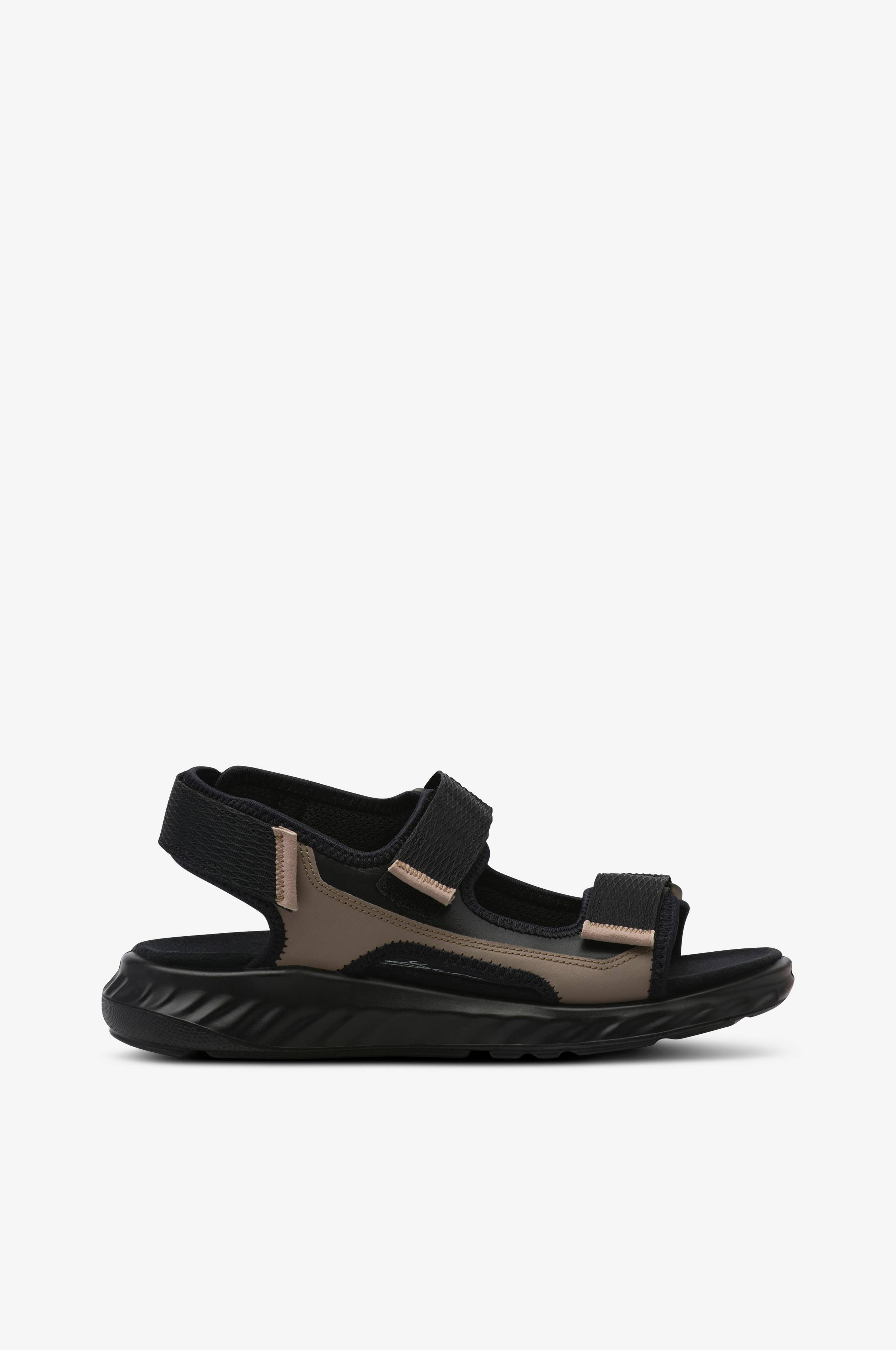 Sporty sandaler med remme i læder og tekstil som justeres med velcro. Fodsengen er beklædt med blød mikrofiber for ekstra komfort. Eccos Shock Point-teknologi giver skøn affjedring og støddæmpning.