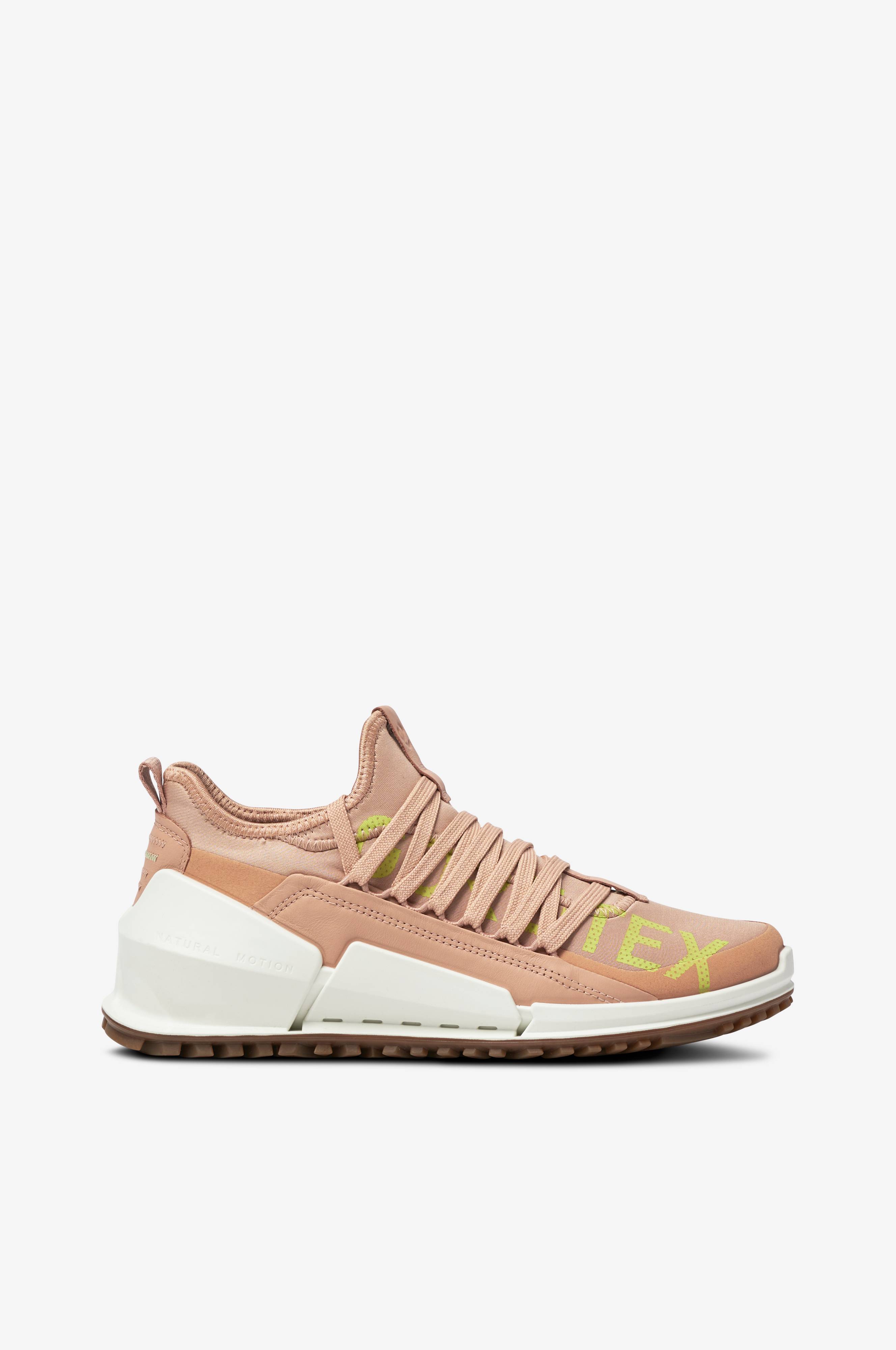 Sneakers med overdel i en kombination af tekstil og skind med vandtæt Gore-Tex-teknologi. Strømpelignende konstruktion som er åndbar. Mellemsål i blød og let ECCO PHORENE som er designet til at være behagelig hele dagen og give energi i hvert skridt. FLUIDFORM-teknologien giver komplet støtte ved at holde mellemfoden på plads med en sideramme af PU og hælen med det unikke, omsluttende såldesign. Udtagelig, ventilerende OrthoLite-indersål med Memory Foam. Ydersål af gummi med unikt mønster giver fuld kontakt med underlaget, hvilket giver godt greb og stabilitet.