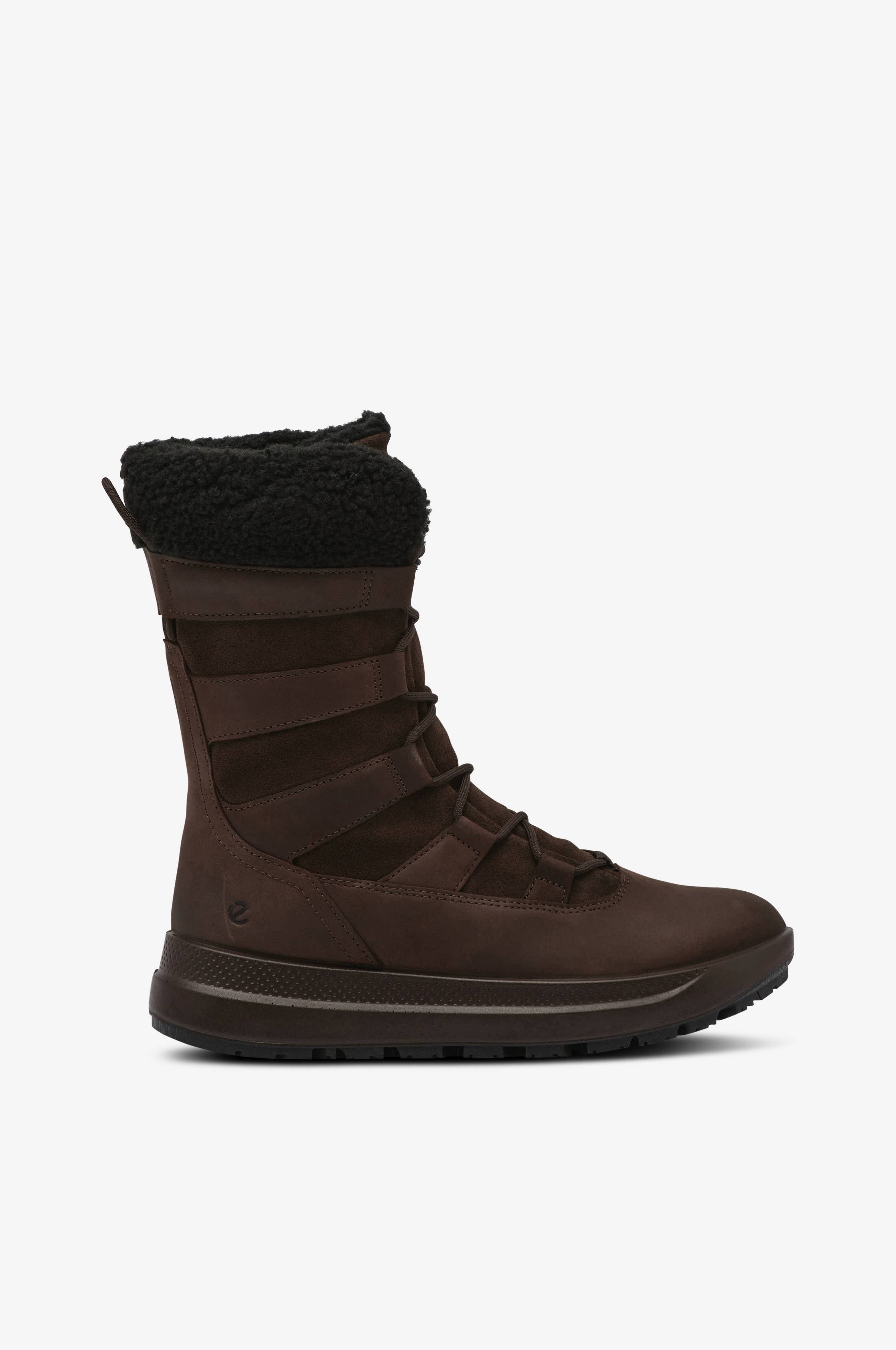 • Vandtætte, varmt forede vinterstøvler i nubuck • Snøring • Varmt for i syntetisk pels • Trækstrop bag på skaftet • Udtagelig indersål • Ydersål i gummi med kraftigt mønster • ECCO FLUIDFORM giver stødabsorbering og fleksibilitet • Skafthøjde: 20 cm i str. 37