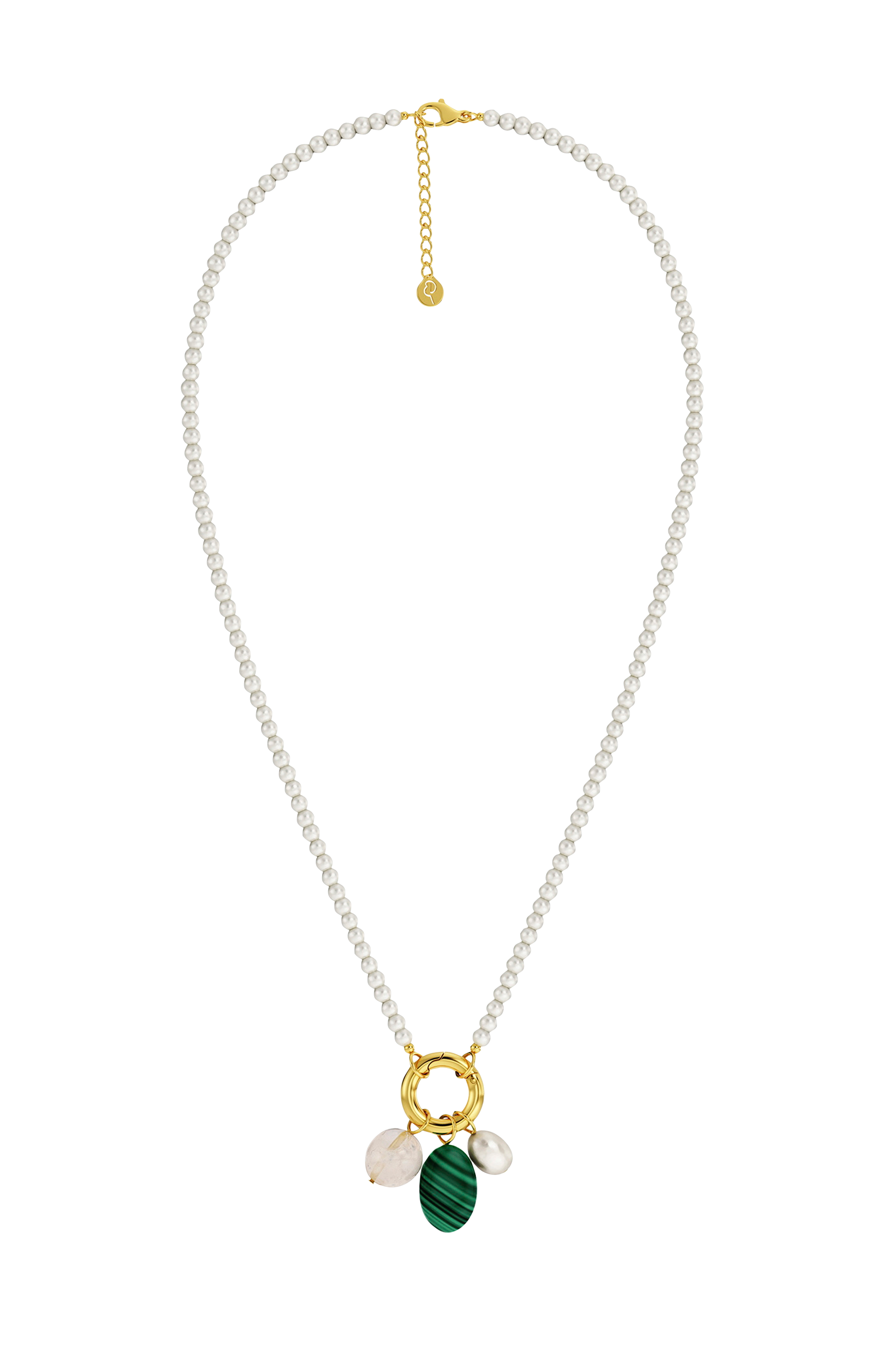 • Perlekæde med 14K guldbelagt vedhæng i rustfrit stål og sten i Rosenkvarts• Nikkelsikker• Justerbar længde 42-45 cmRing Ø 14 mm