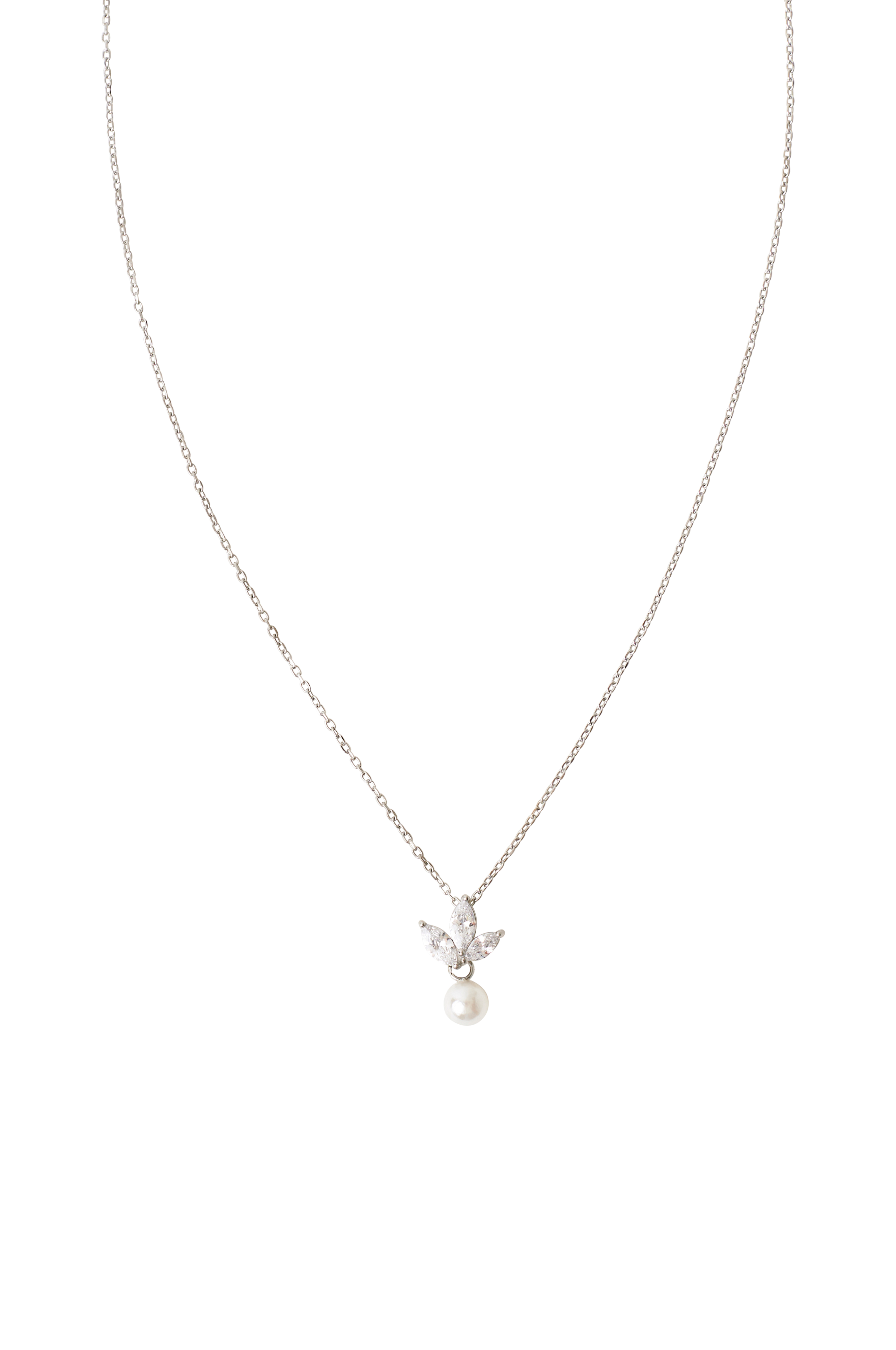 Tynd diamantslebet ankerkæde med tre små blade med klare sten og en rund perle. I rustfrit stål.Justerbar længde 42-45 cm. Vedhængets mål ca. 16 x 10 mm.