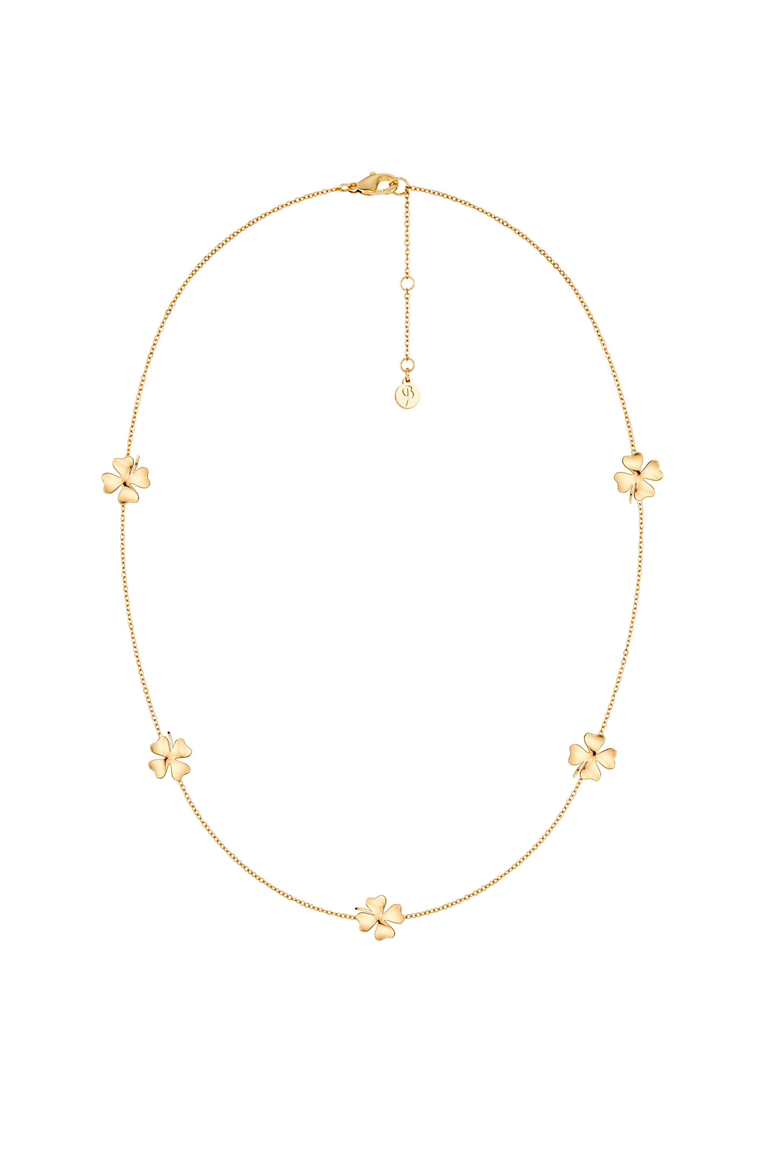 • 14K guldbelagt halskæde i rustfrit stål med små Firkløverer• Nikkelsikker• Vandafvisende