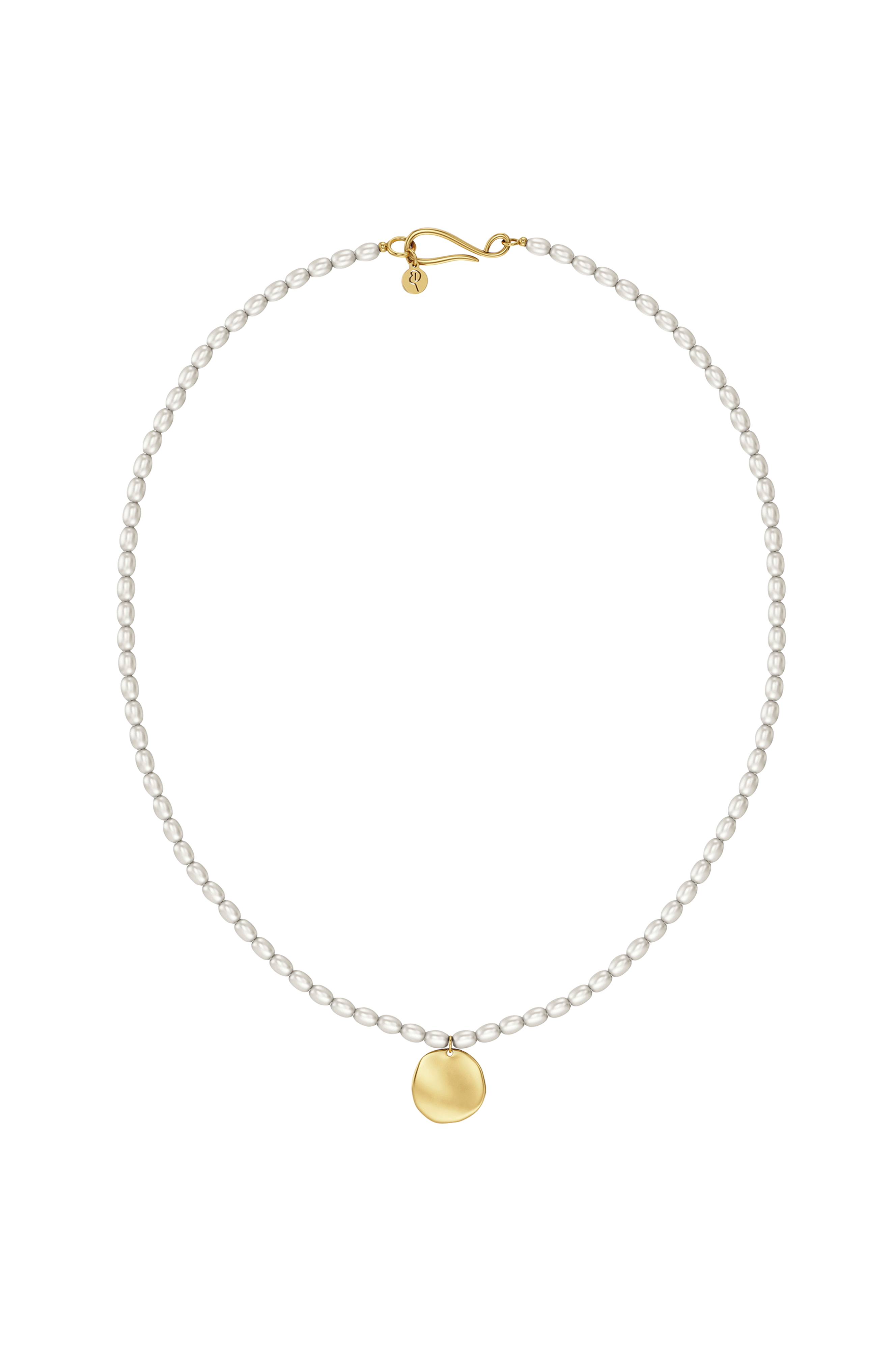 • Halskæde med perler og hængesmykke• Fremstillet af 14K guldbelagt rustfrit stål• Spænde bagpå• Kæde med perledesign• Hængesmykke med irregulær, afrundet form• Nikkelsikker• Vandafvisende• Vedhængets dimensioner: 1,5 cm• Mål halskæde: 44 cm