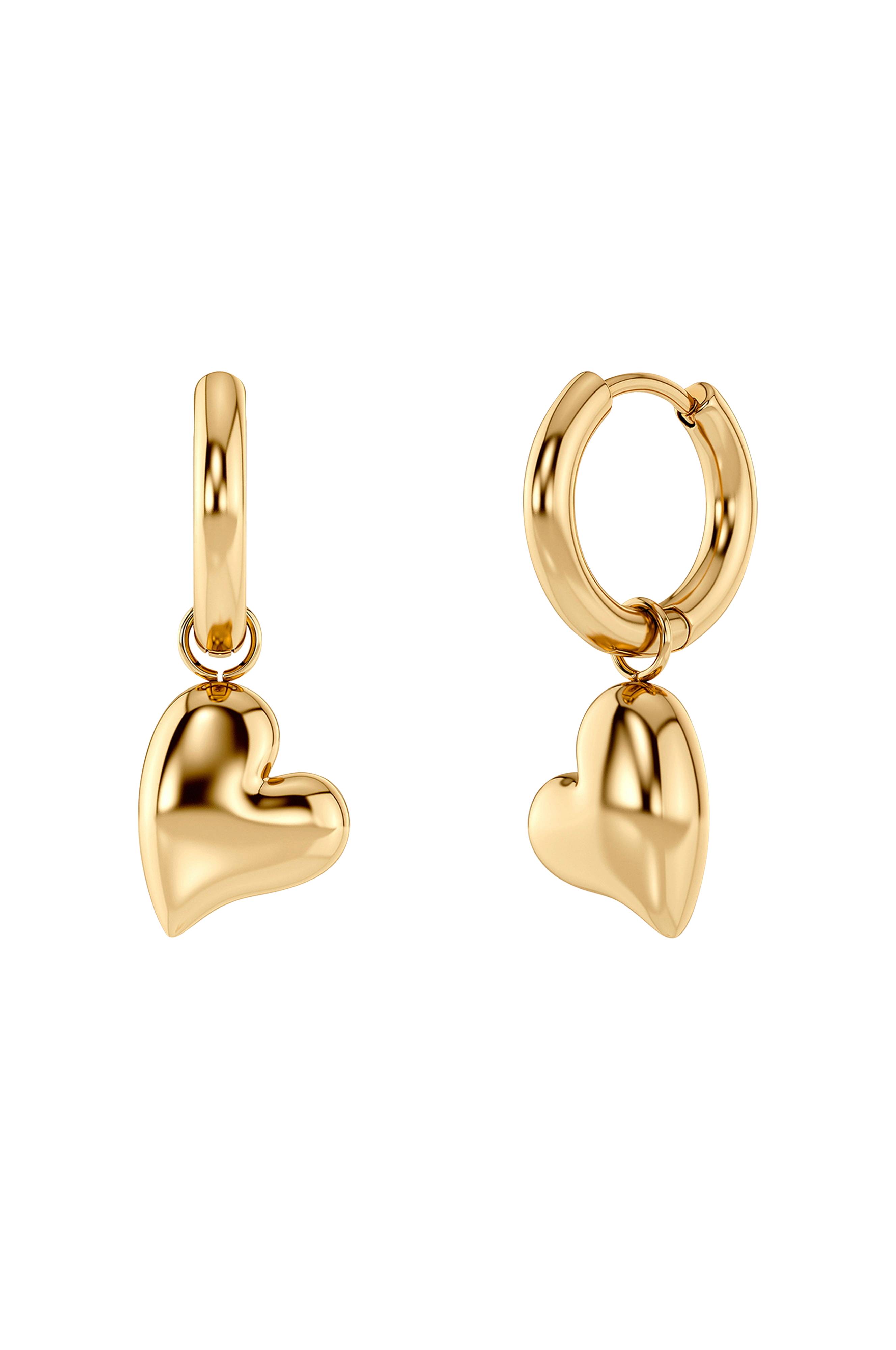 • 14K guldbelagte øreringe i rustfrit stål• Dekorativt hjerte• Nikkelsikkerer• Vandafvisender