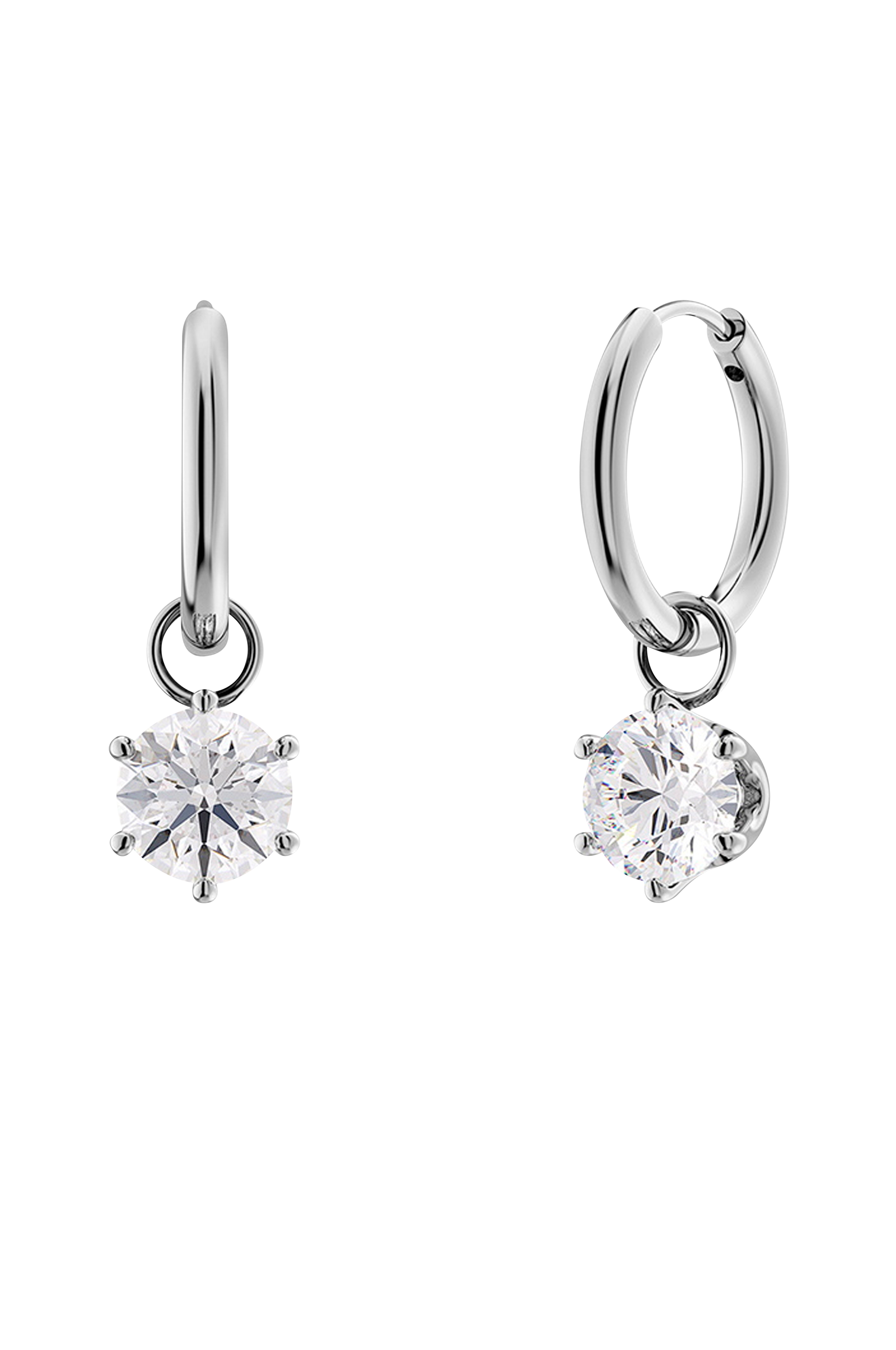 Klassiske øreringe, der er fine at have på til både hverdag og fest. Crown Hoops har en indfattet klar sten hængende i ringen. Den hængende sten kan fjernes fra ringen, og du kan også sætte noget andet fast.