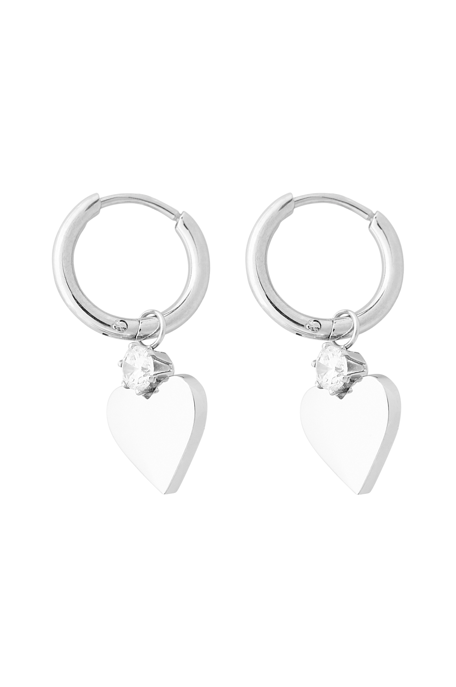 • Øreringe i rustfrit stål• Dekorativt, hængende hjerte med funklende sten i kubisk zirkonia• Nikkelsikkerer• Vandafvisender