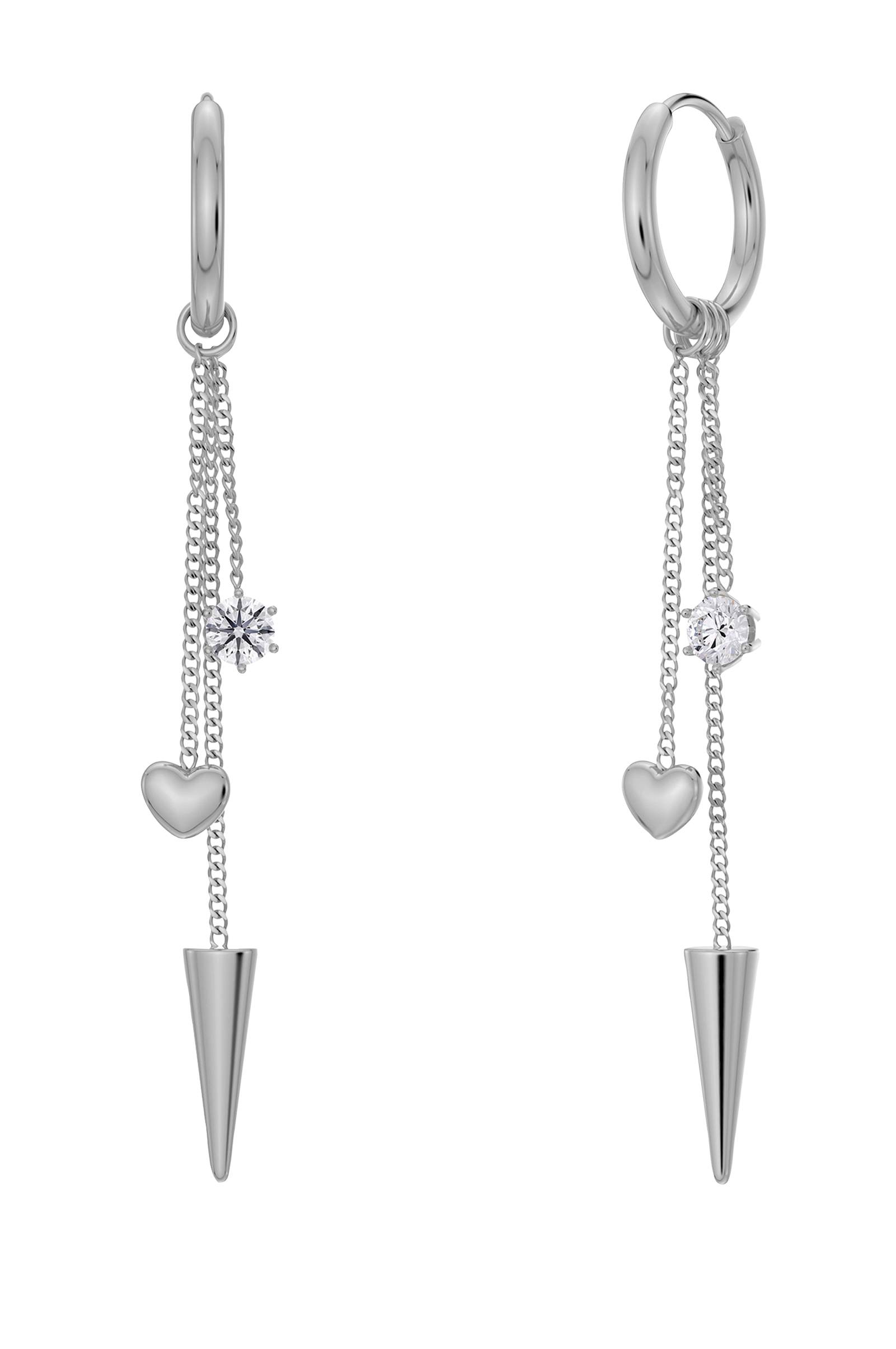 • Øreringe i rustfrit stål med dekorative, hængende kæder• Små, dekorative vedhæng• Nikkelsikkerer• Vandafvisender