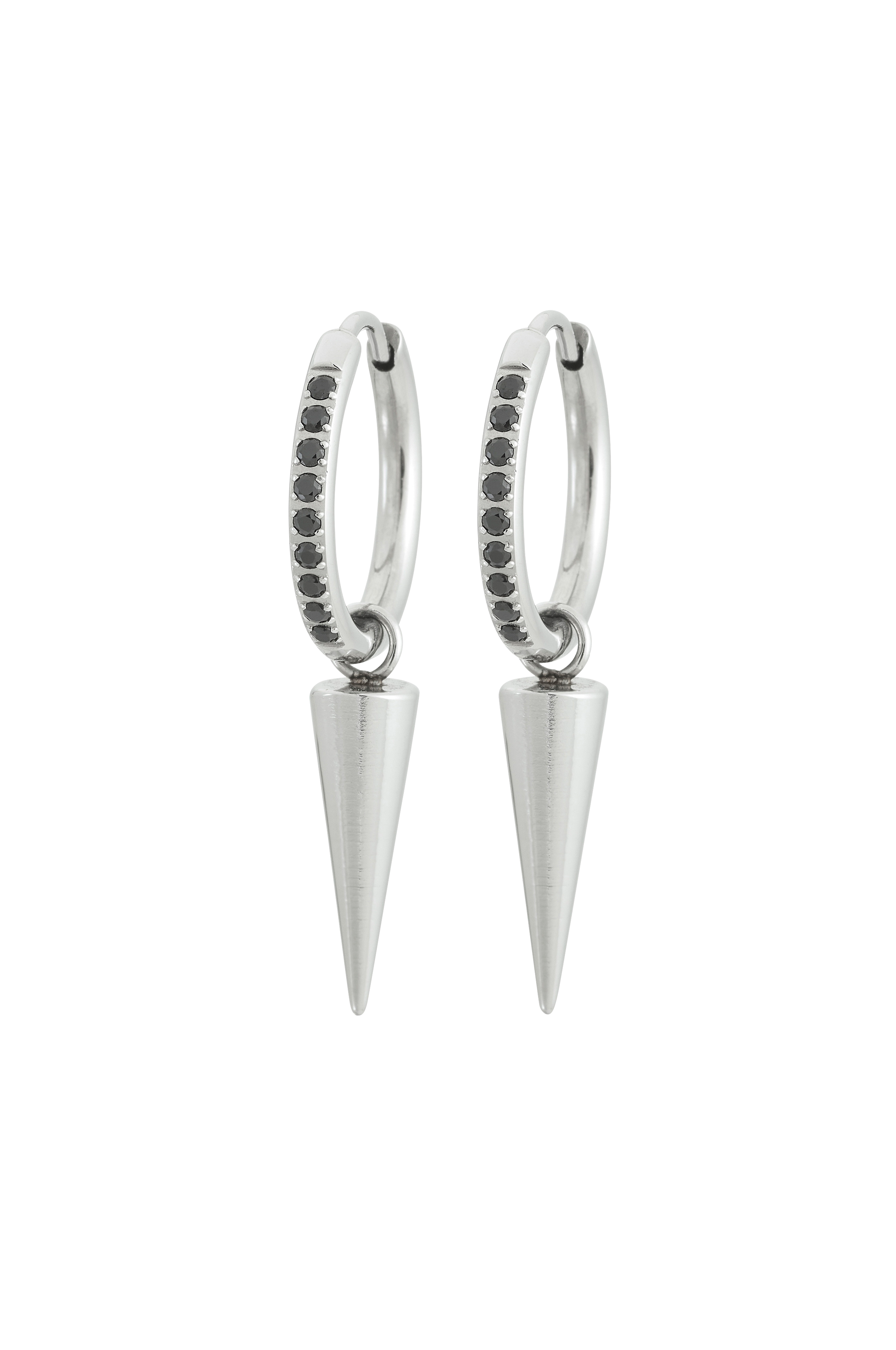 • Glat model i rustfrit stål• Ringe med sten i kubisk zirkonia og vedhæng• • Mål: Ø 16 x L 31 mm