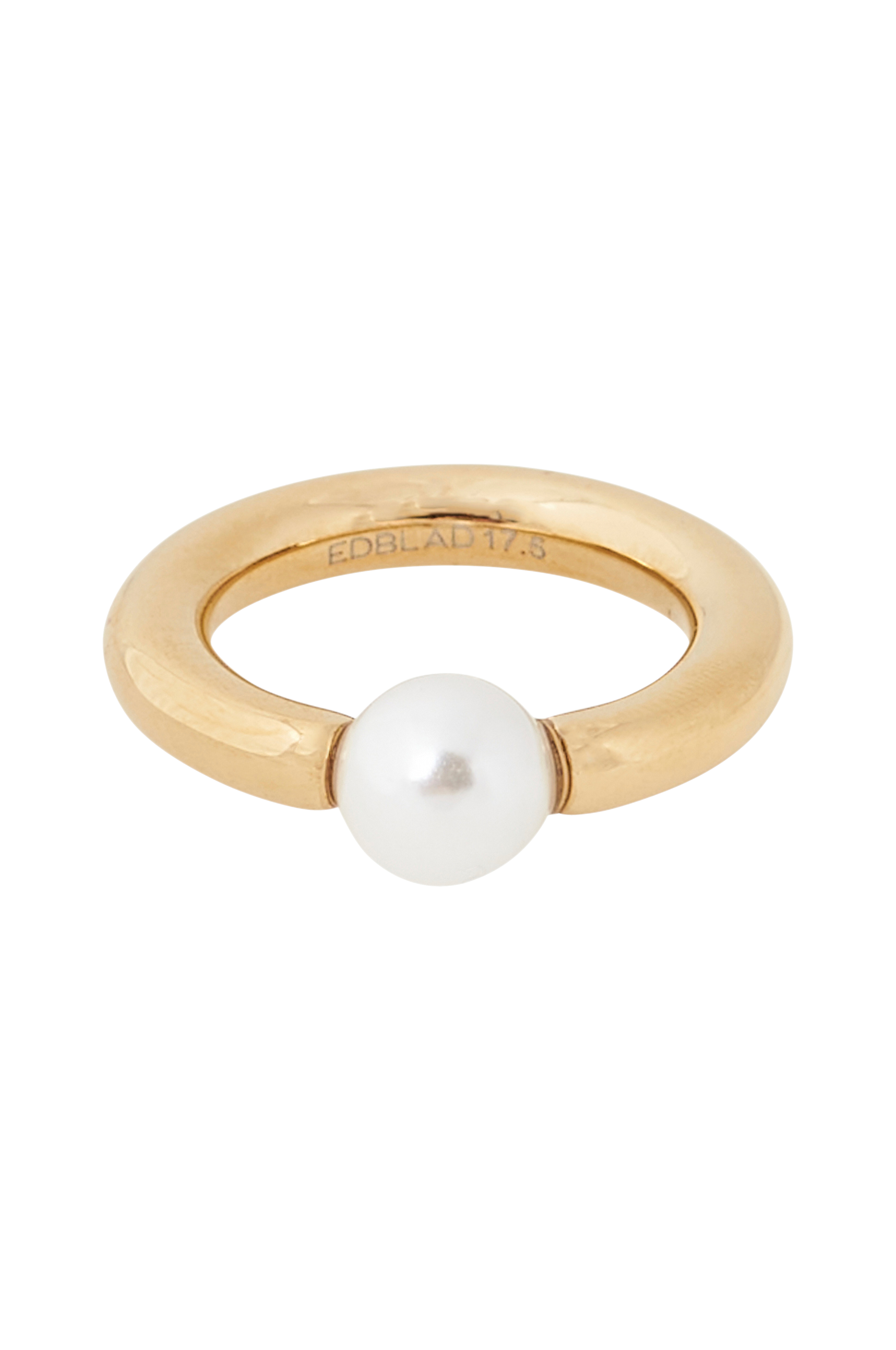 • 14K guldbelagt model i rustfrit stål med perle• Nikkelsikker• Perle Ø 8 mm, ringens bredde 4 mm