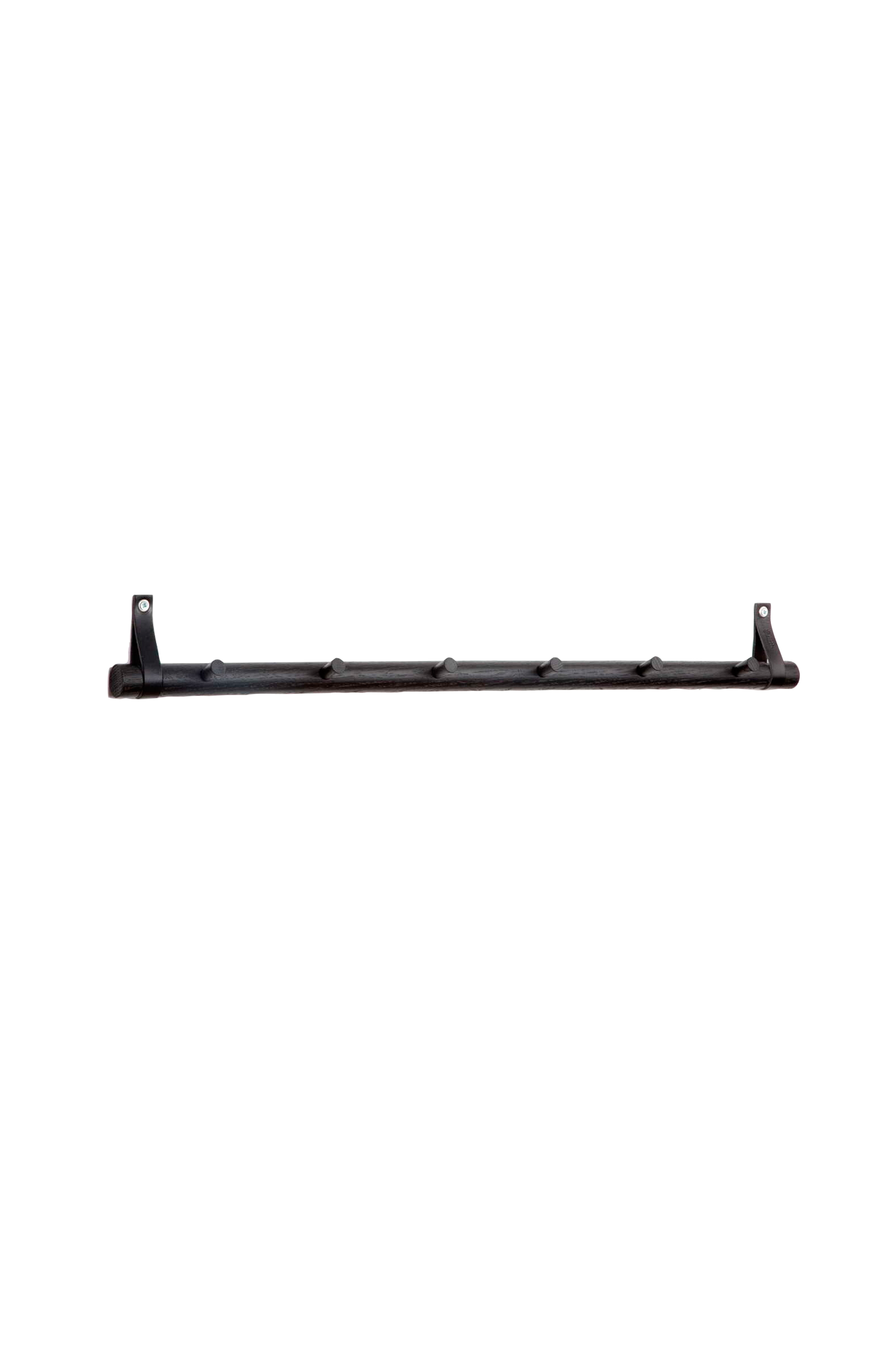 Klassisk knagerække fremstillet af eg og læder. Den fås i to længder, så den passer til alle hjem og giver et attraktivt statement i entreen, køkkenet eller badeværelset. Mål: længde 80,5 cm, bredde 5,5 cm, højde 9 cm. Materiale: eg, læder.