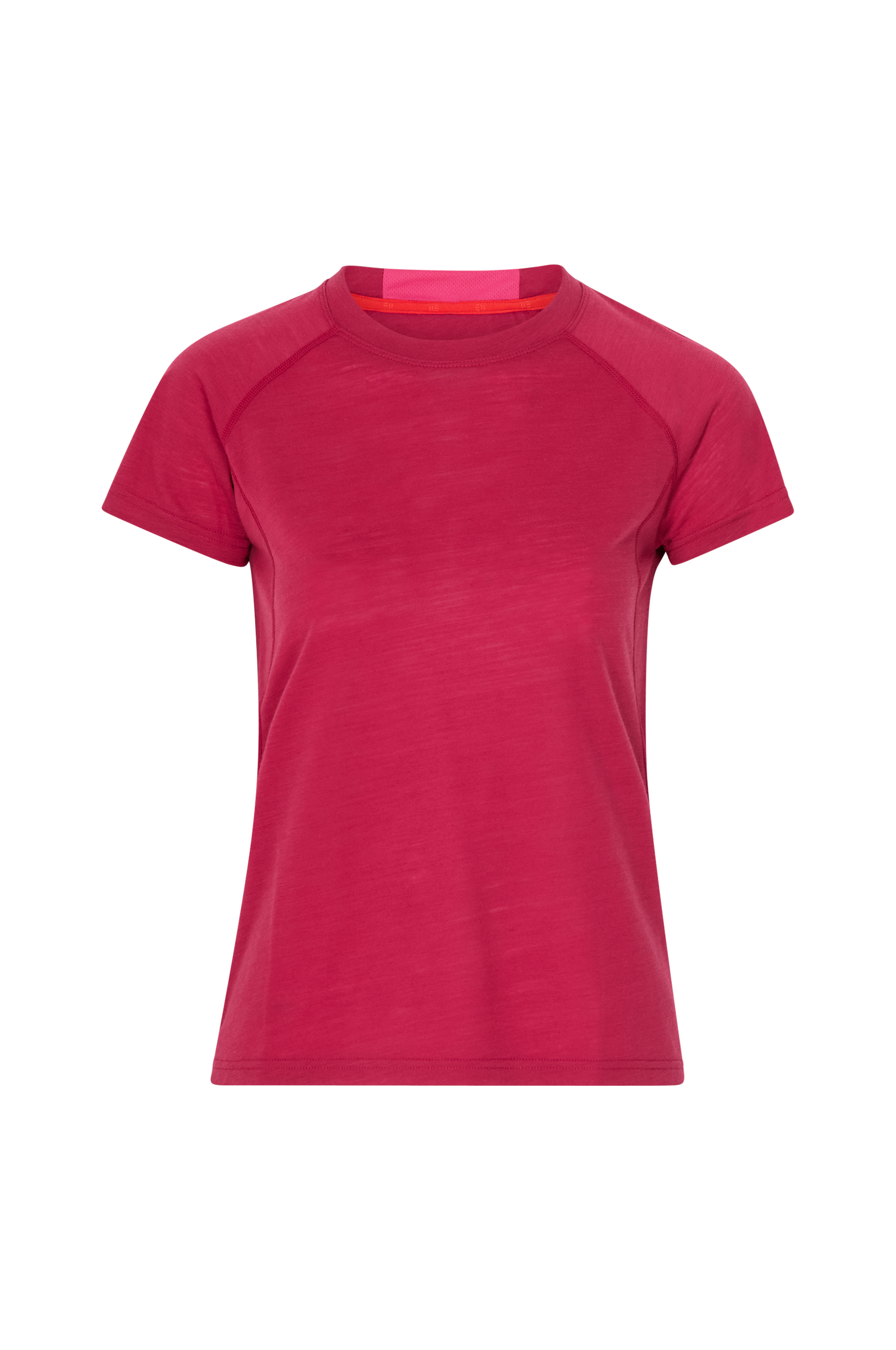 Kortærmet top i let, blød merinouldblanding som transporterer fugt væk fra kroppen. Rund hals. Bløde flatlocksømme minimerer risikoen for gnavesår.
