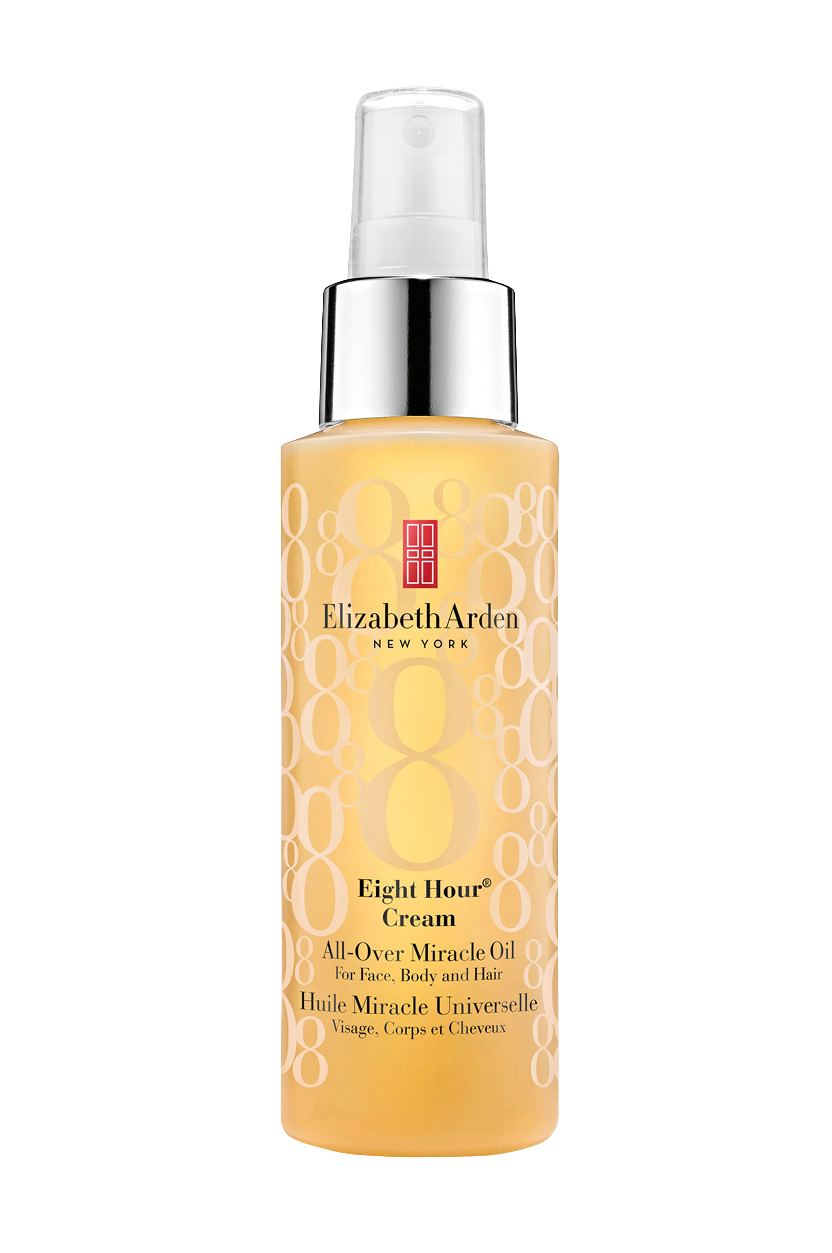 Eight Hour® Cream All-Over Miracle Oil er et luksuriøst produkt, som tilfører fugt og plejer krop, ansigt og hår, og desuden viser kliniske tester, at den fugter huden i otte til tolv timer. Olien er smukt emballeret i en elegant flaske. Eight Hour® Cream All-Over Miracle Oil giver en ægte spafornemmelse derhjemme og er mildt parfumeret med en let citrusduft, som giver en følelse af velvære.