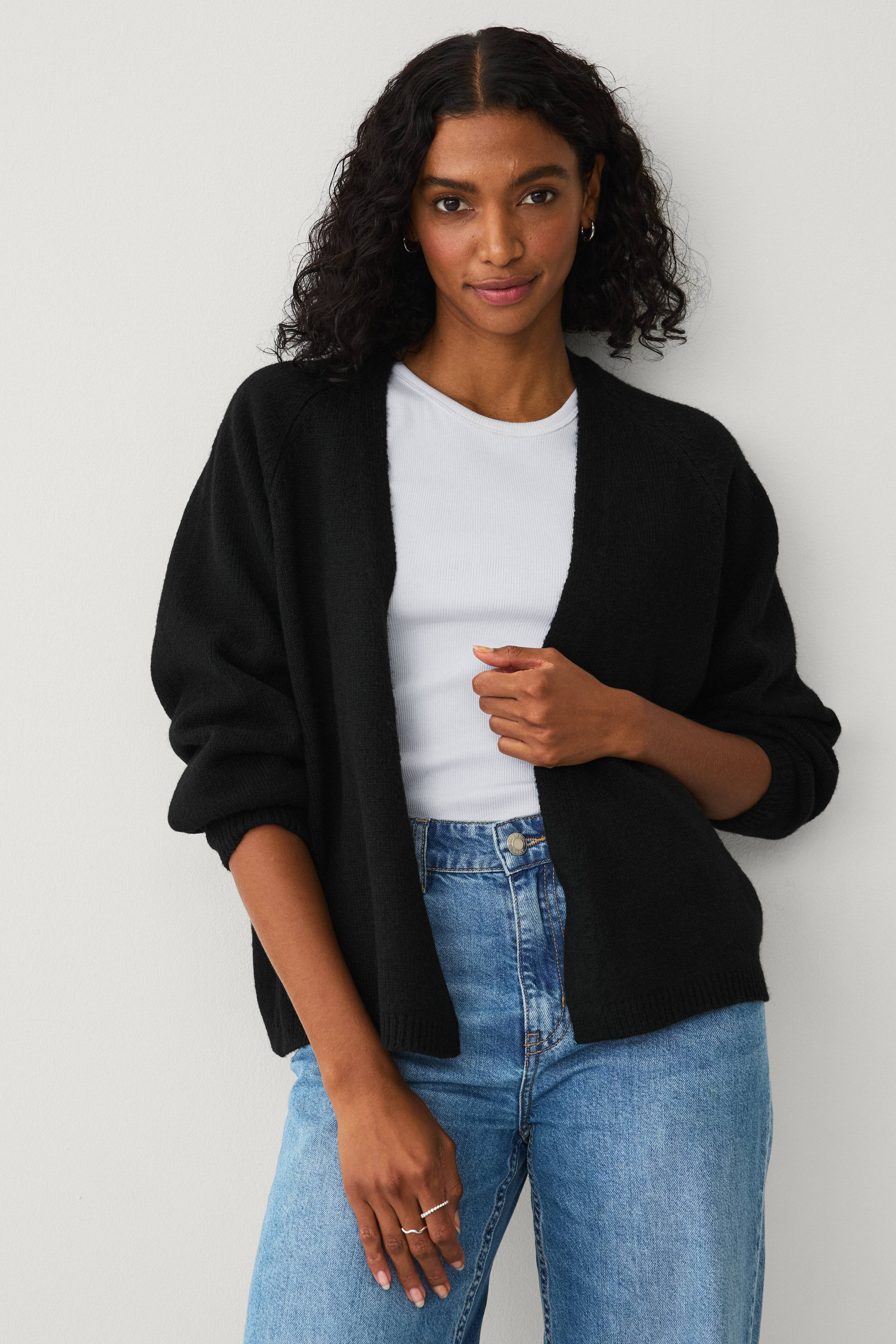 • Strikket cardigan med åben forside• Ribstrikkede kanter ved manchetterne og nederst• Længde: 58 cm i størrelse S