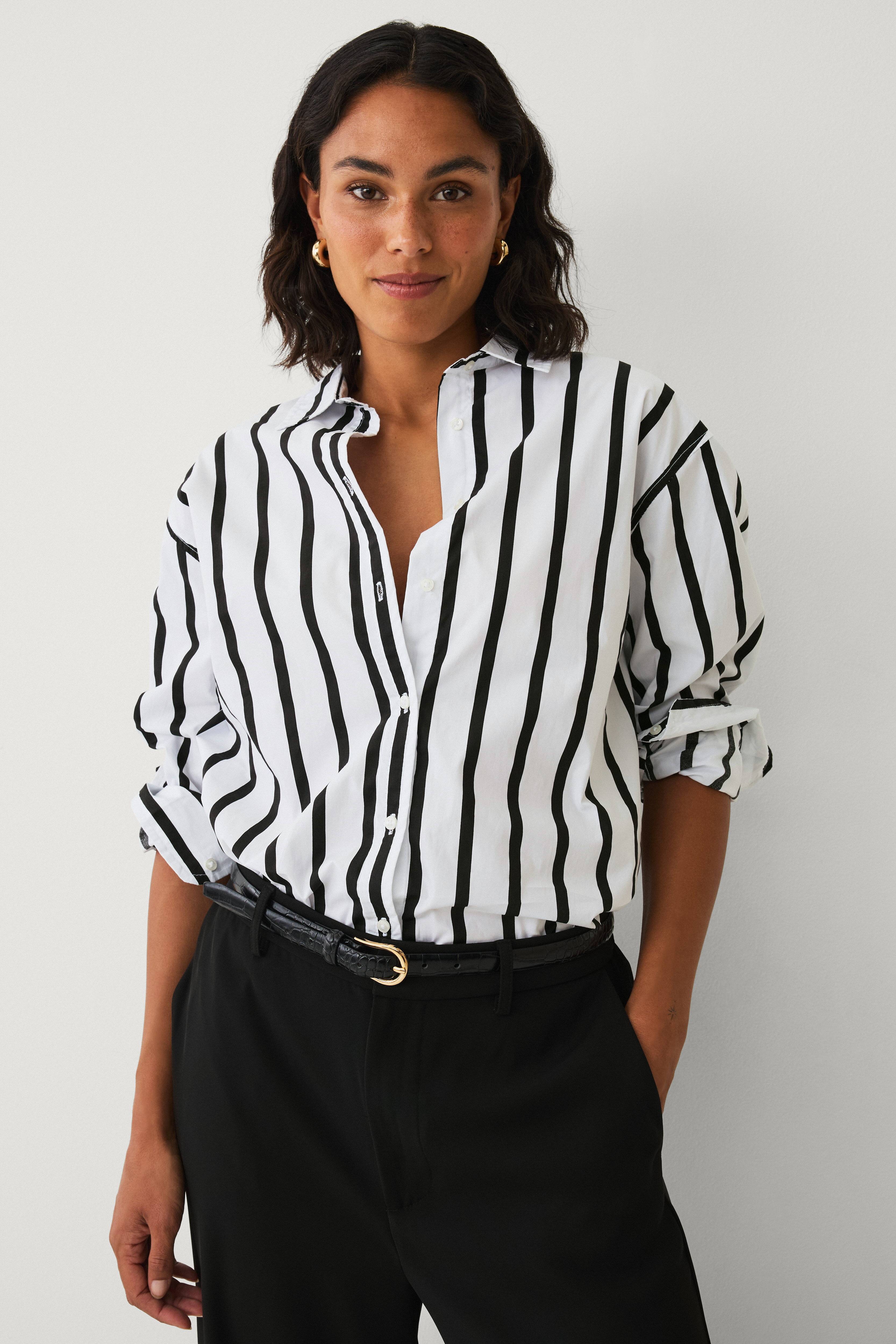 • Skjorte med afslappet pasform i bomuldspoplin• Knapper foran• Manchetter med knapper ved manchetterne• Afrundet søm med lidt længere bagside• Længde: 83 cm i størrelse S