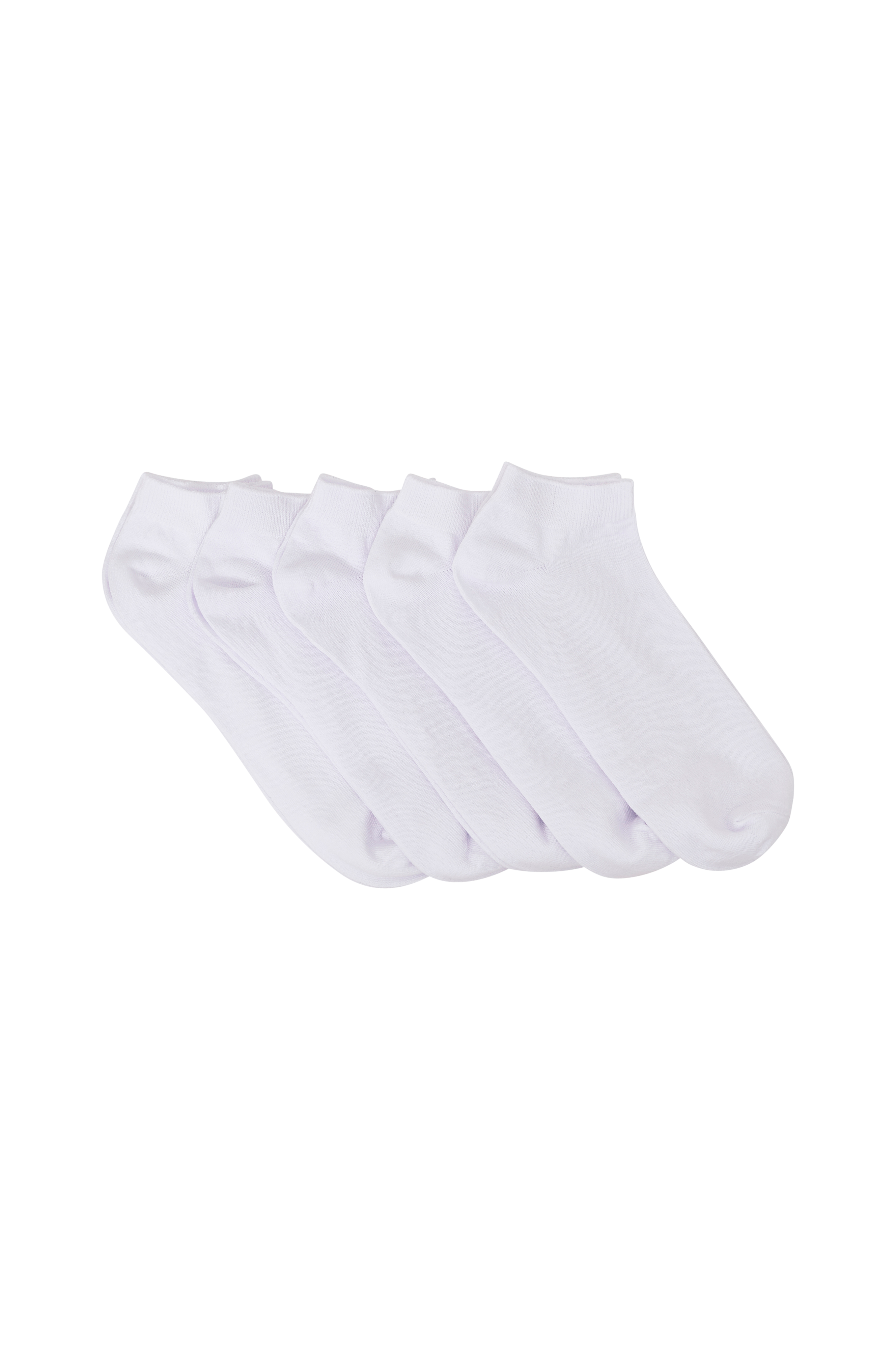 Ankelsokker i 5-pak. En perfekt basissok med lavt skaft. Af skøn bomuldsblanding med syet tå, strikket hæl og ribkant på skaftet.