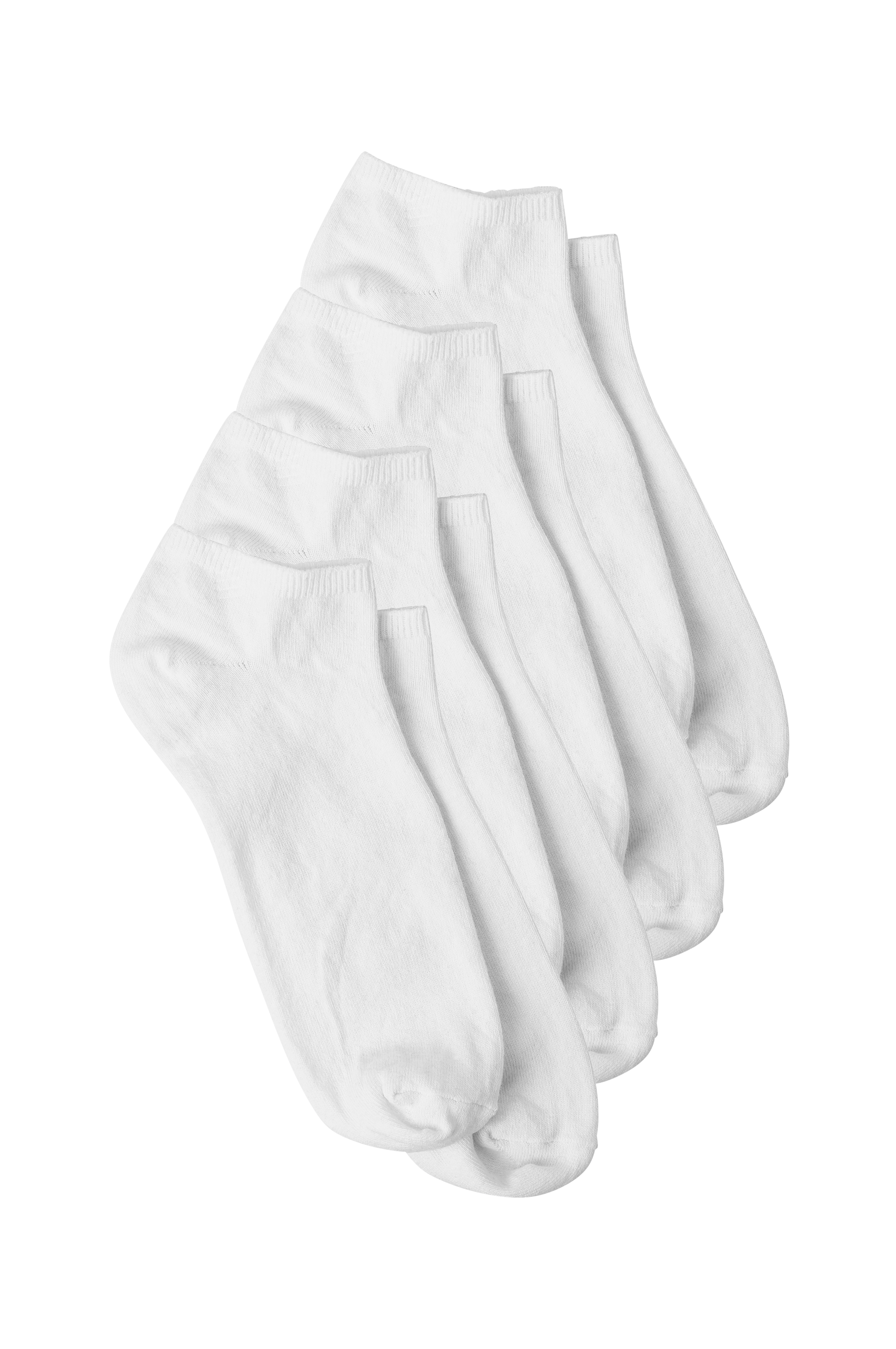 Strømper i 4-pak i fin kvalitet af økologisk bomuld. Skøn model med lille ribkant øverst.