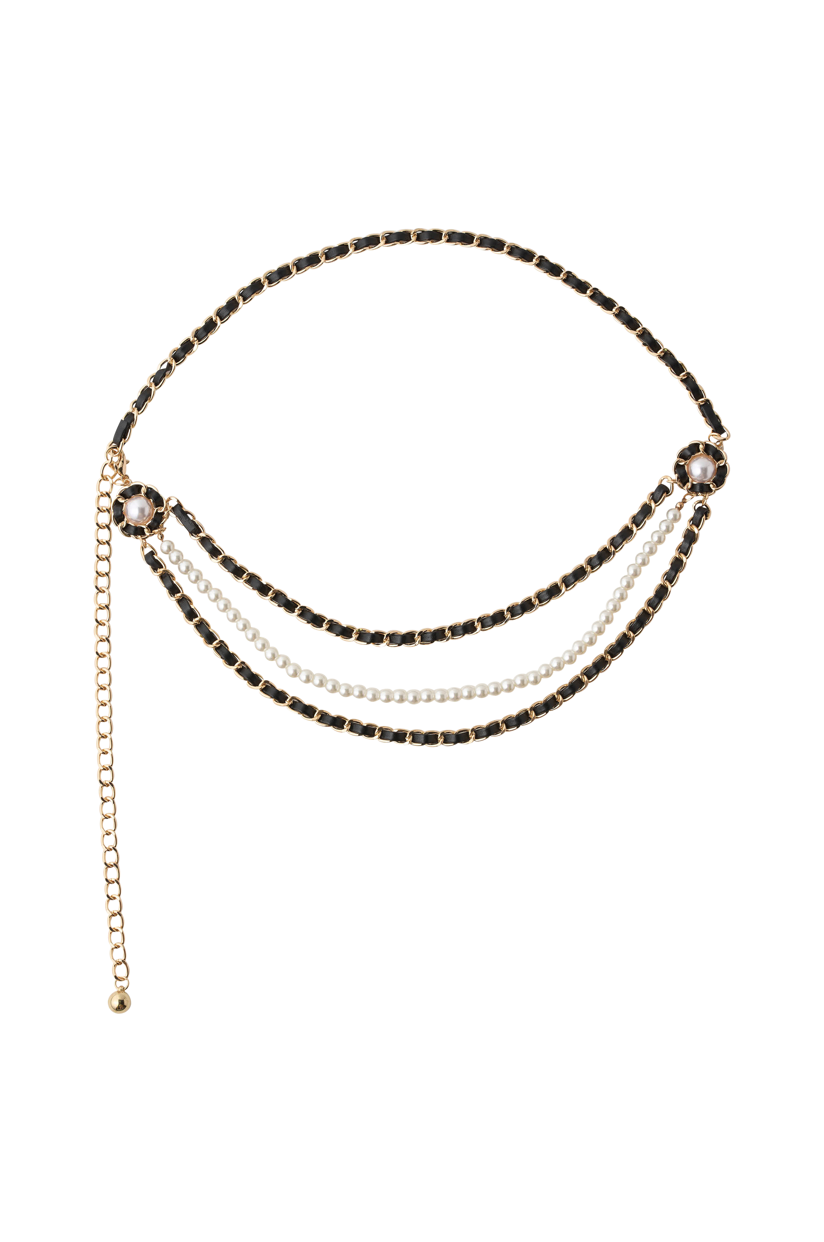 • Dekorativ kæde med perler og kunstlæderdesign• Justerbar længde 90-117 cm