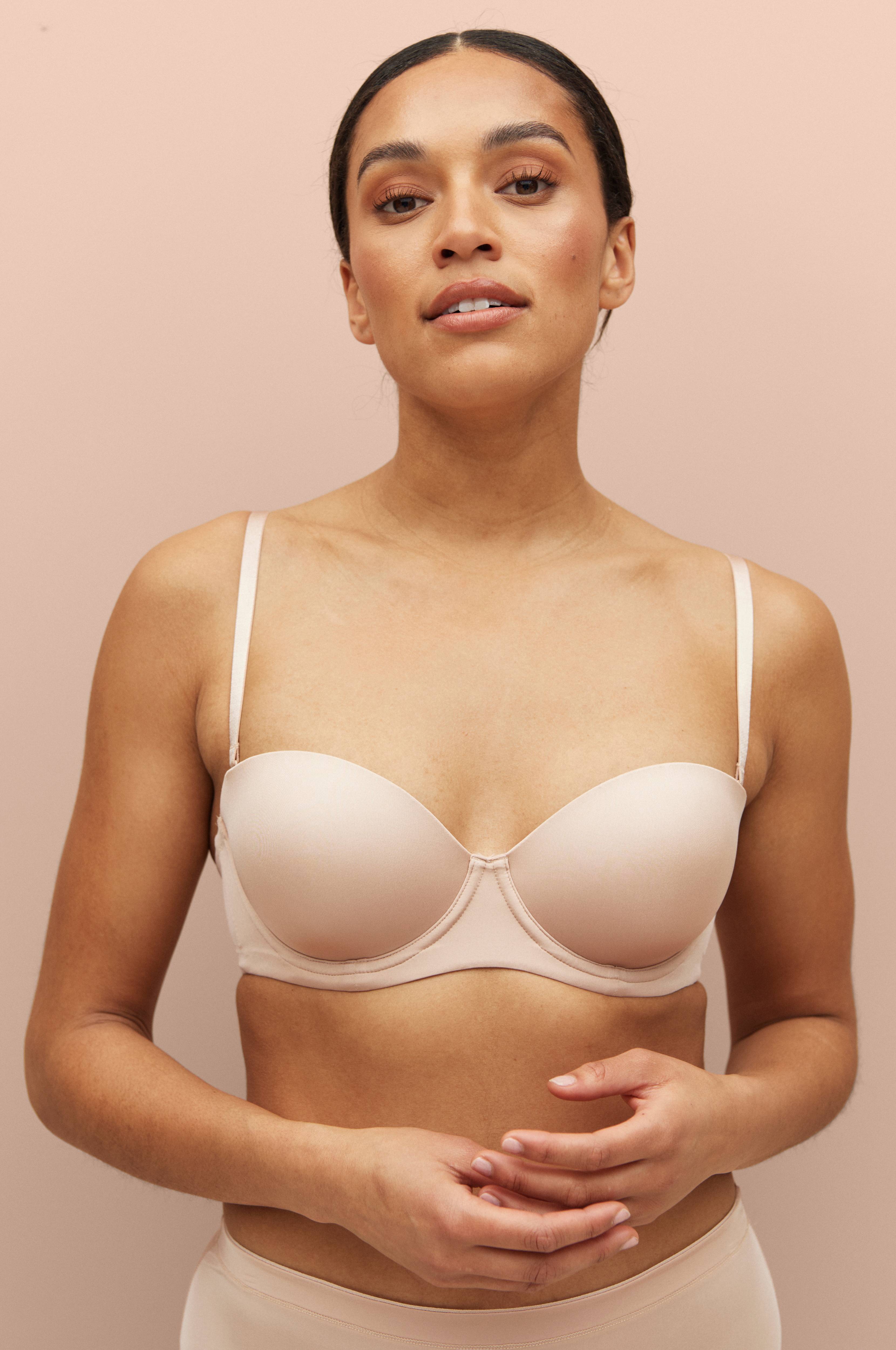 Balconette-bh med formpressede og let vatterede skåle som giver fin form og god støtte. Skålene er beklædt med blank, glat jersey. Aftagelige, justerbare skulderstropper og hægte- og mallelukning i ryggen.