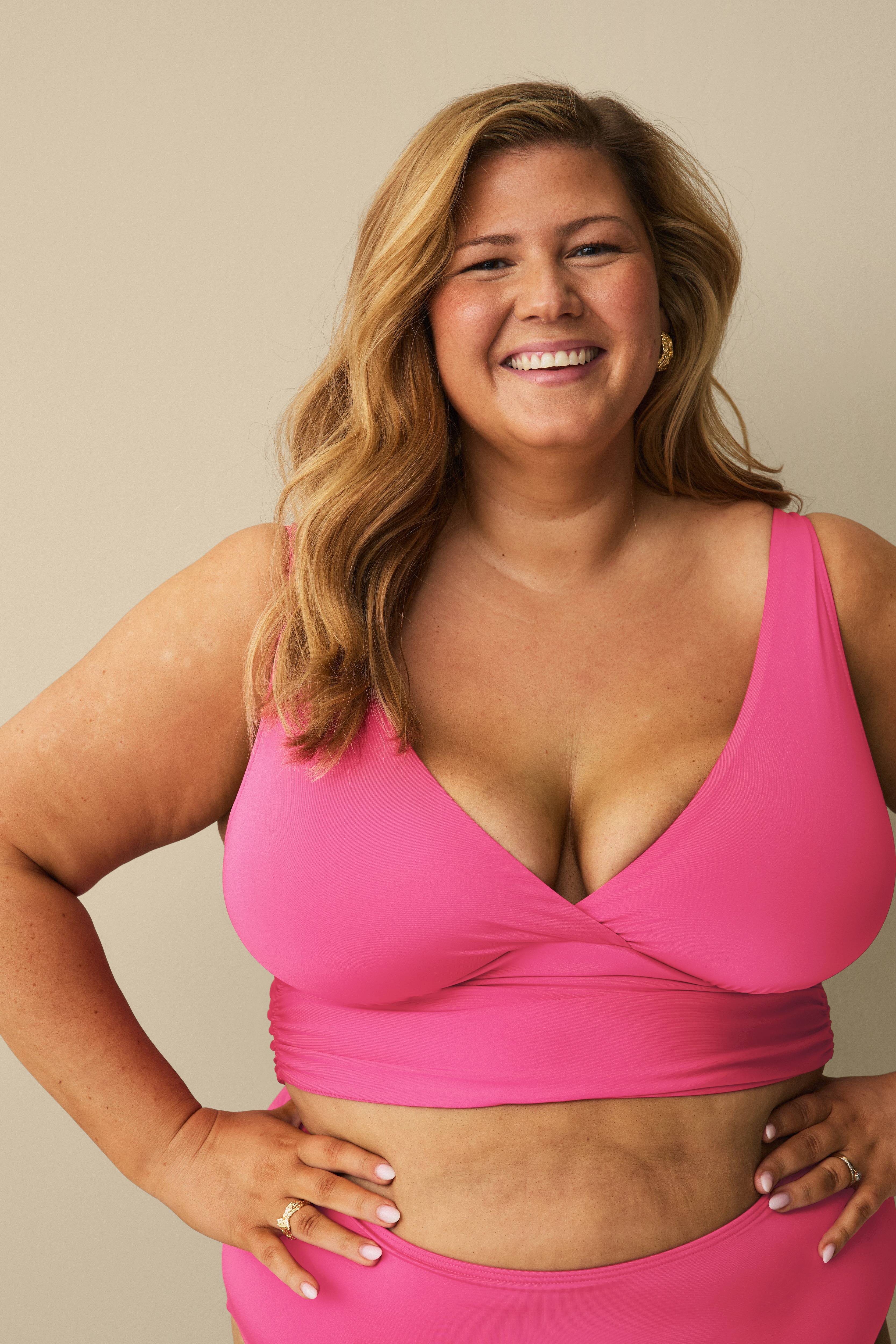 • Mesh-forede skåle • Justérbare skulderstropper • Snøring i ryggen • Samling i siderne og ved brystet • Da modellen er lidt længere, kan den bruges både som tankini og bikini-BH. • Dette produkt er en del af Ellos eksklusive kollektion i samarbejde med Linda-Marie Assergård. • Model 1 bruger størrelse 52 Model 2 bruger størrelse 44