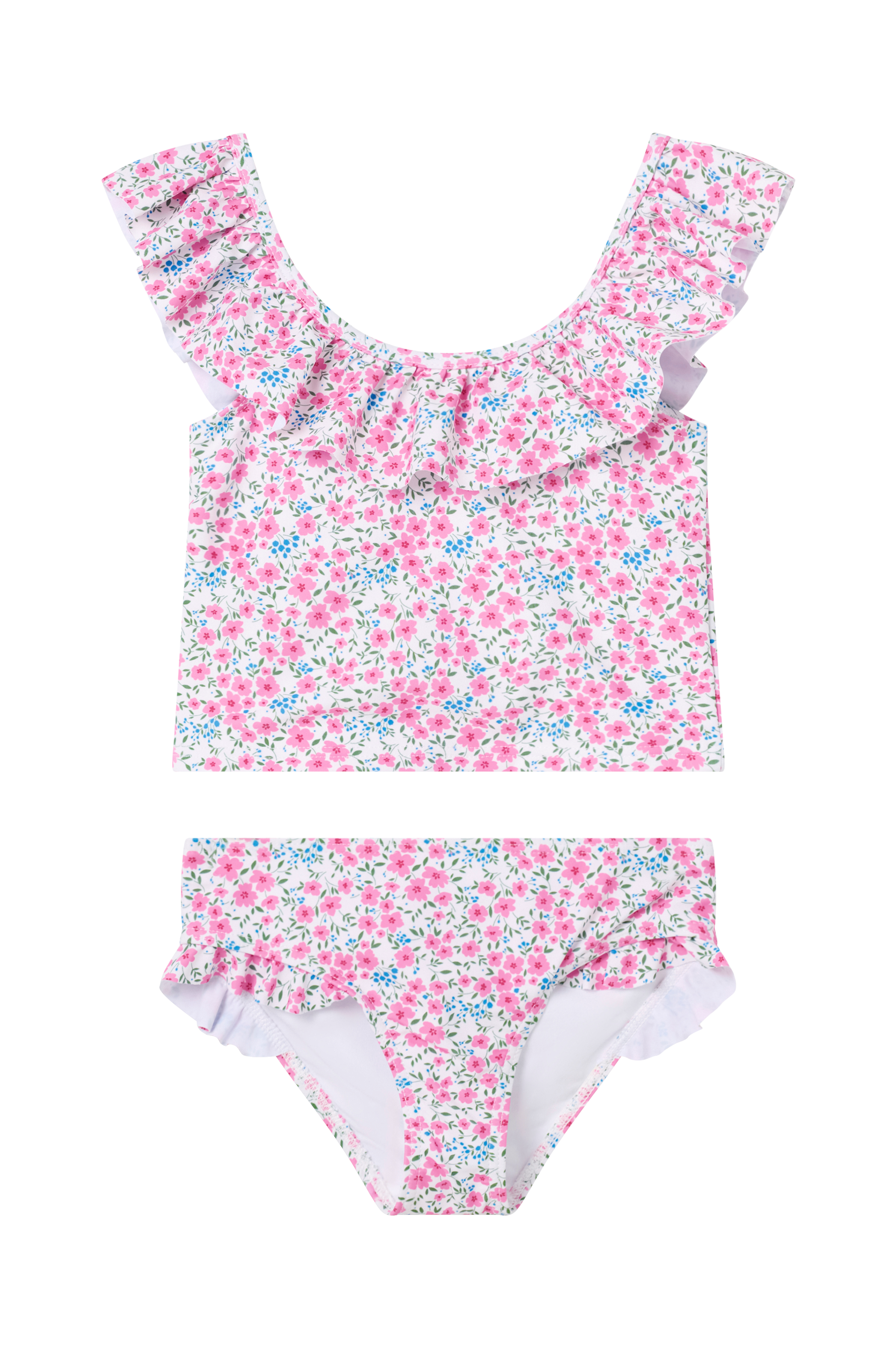 • Bikinisæt med helt foret øvre del og helt foret underdel• Normal pasform• Volanter over skuldrene, i halsen og på benåbningerne