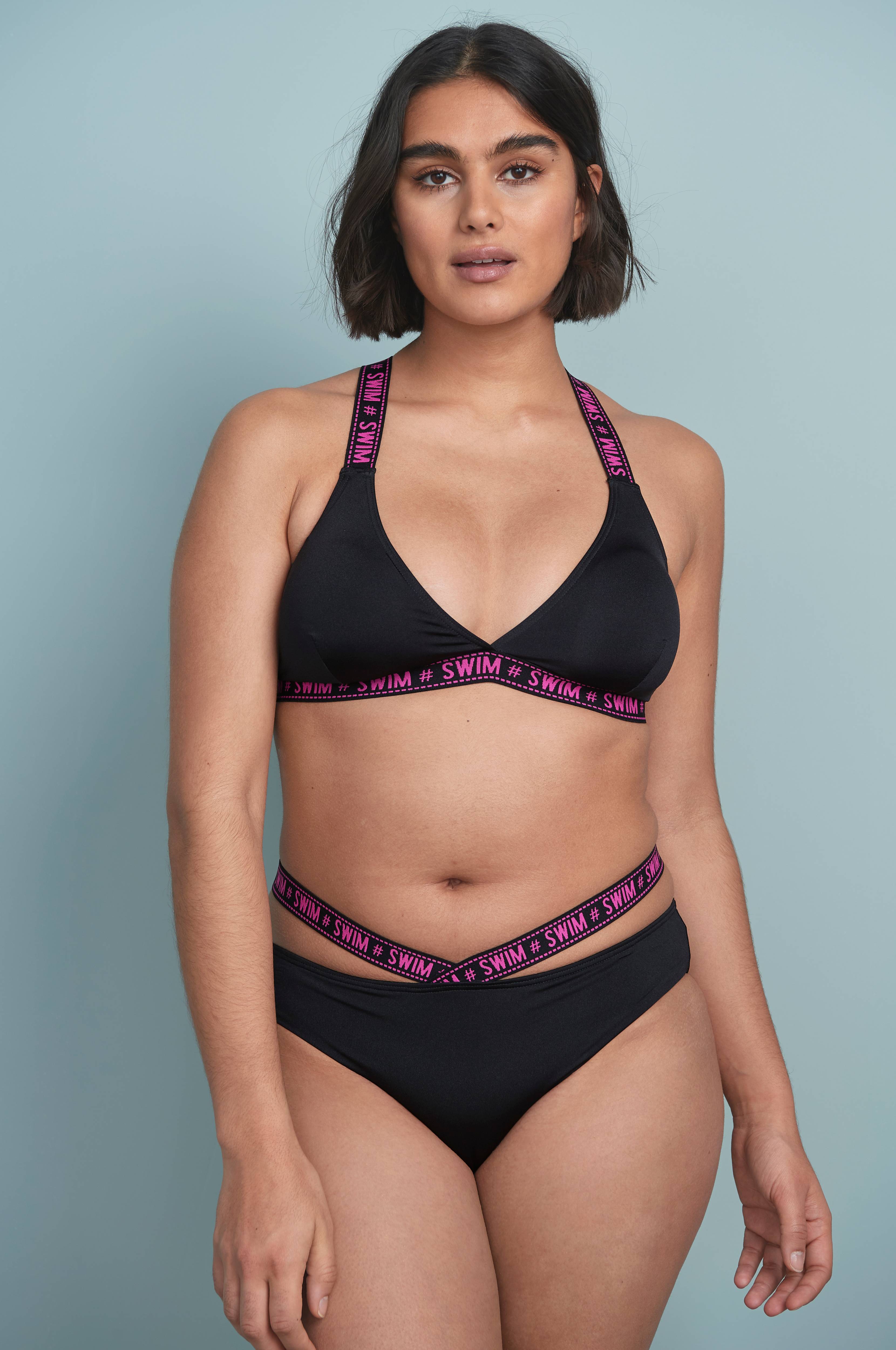 Bikinibuks Viola er en helforet trusse med logobånd over taljen.