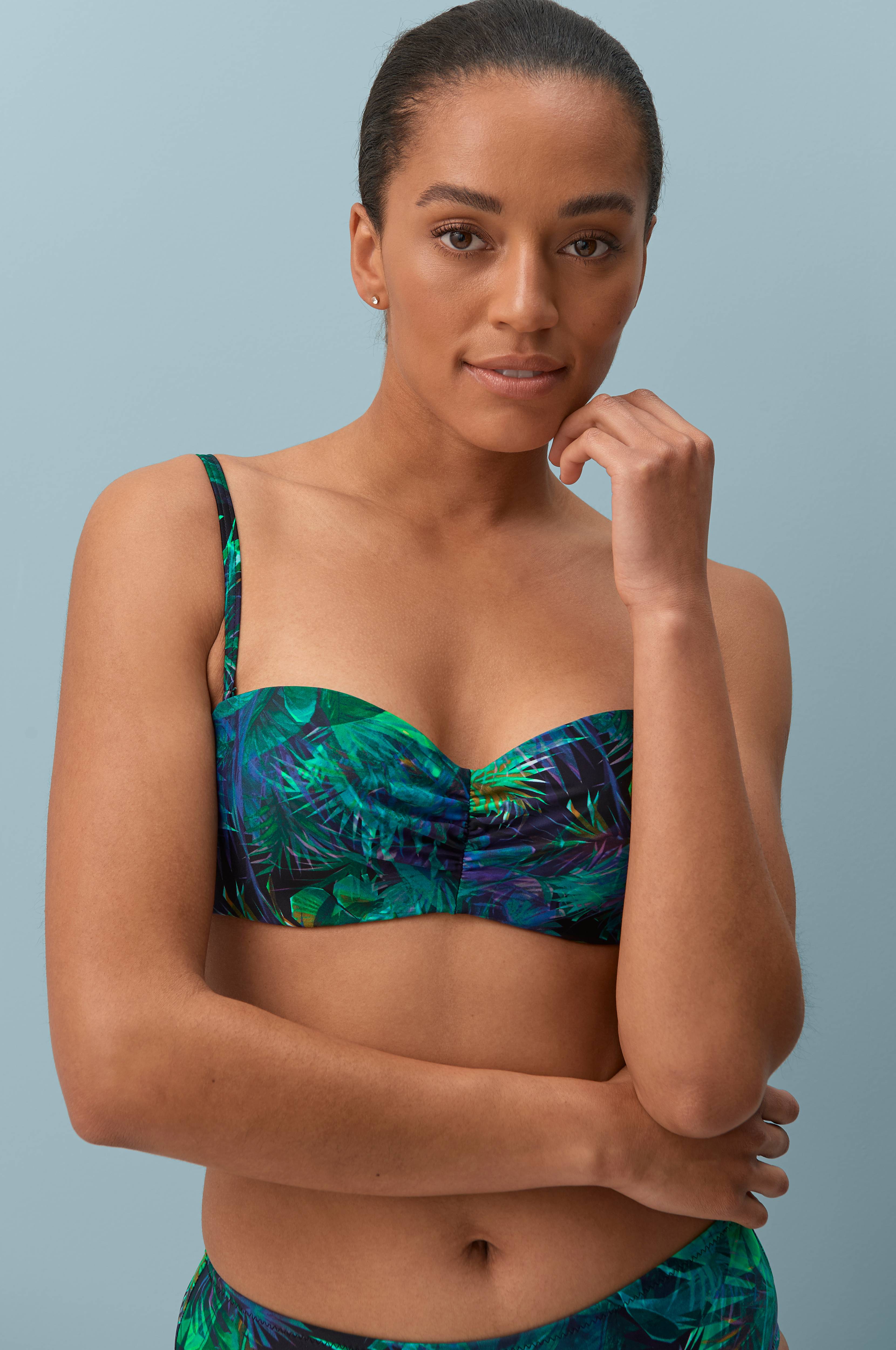 Bikinitop Carly er designet i samarbejde med Therese Alshammar. Balconettemodel med formpressede, let vatterede skåle med bøjle. Rynket drapering mellem skålene. Aftagelige og justerbare skulderstropper og metalspænde i ryggen. Silikone langs rygbåndets overside gør at overdelen sidder godt.
