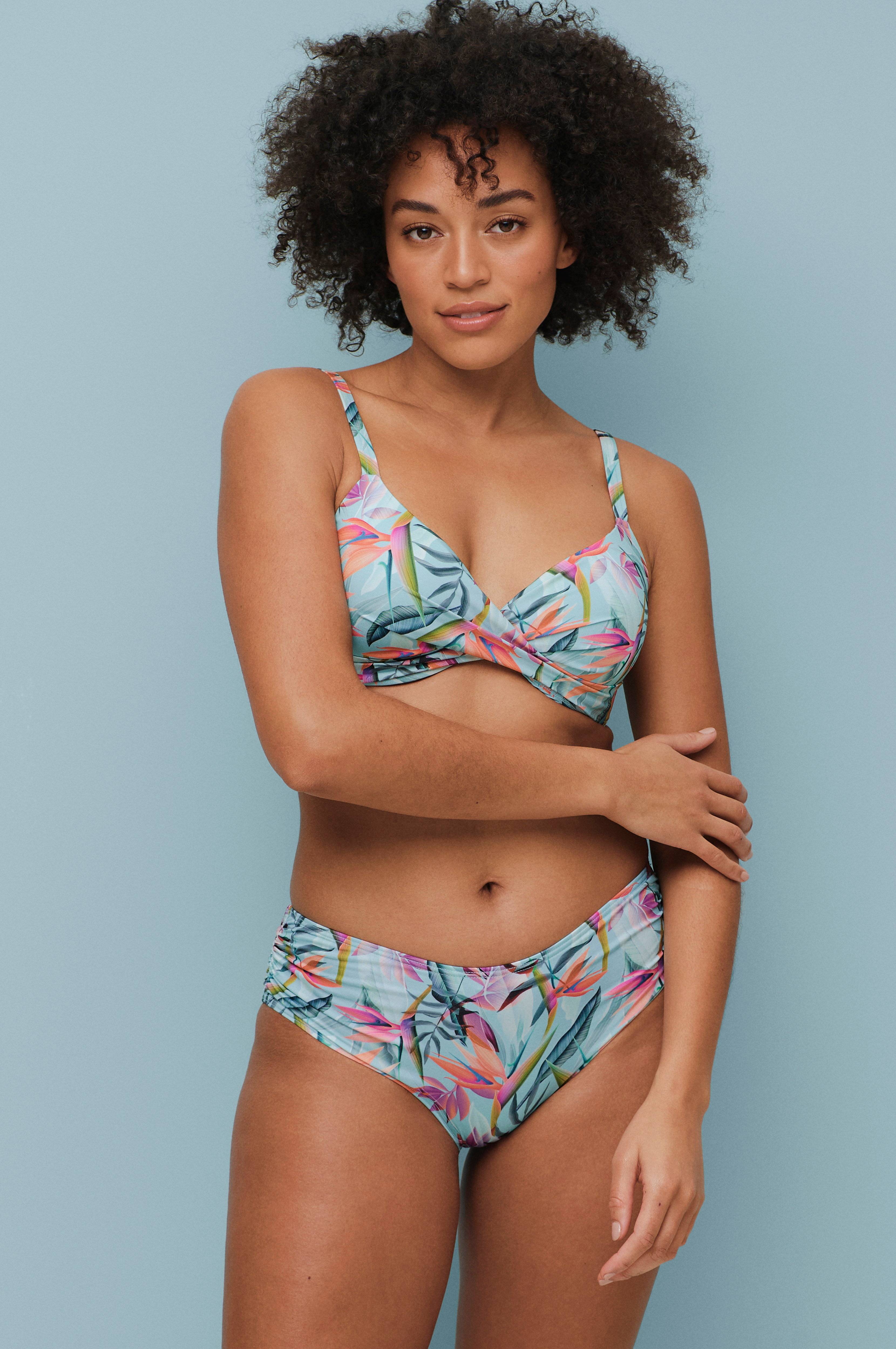 Bikinibuks Lina i hipstermodel med dekorativ rynkning i siderne. Helforet model. Højde i siden ca. 10 cm i str. 34/36.