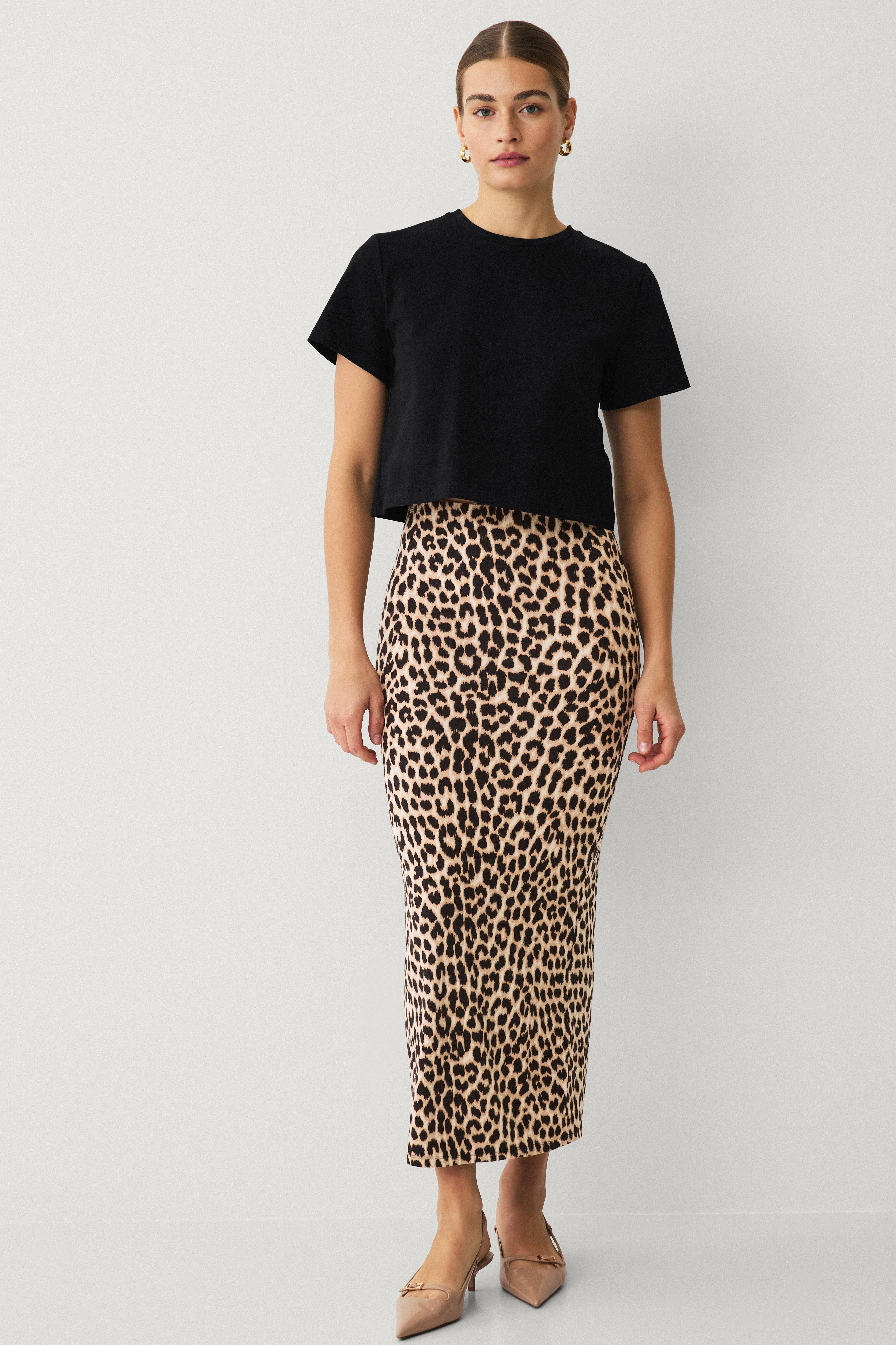 • Store størrelser• Lang, fleksibel model i jersey• Indvendig elastik på toppen• Høj slids nede bagved• Længde: 95 cm i størrelse 34/36