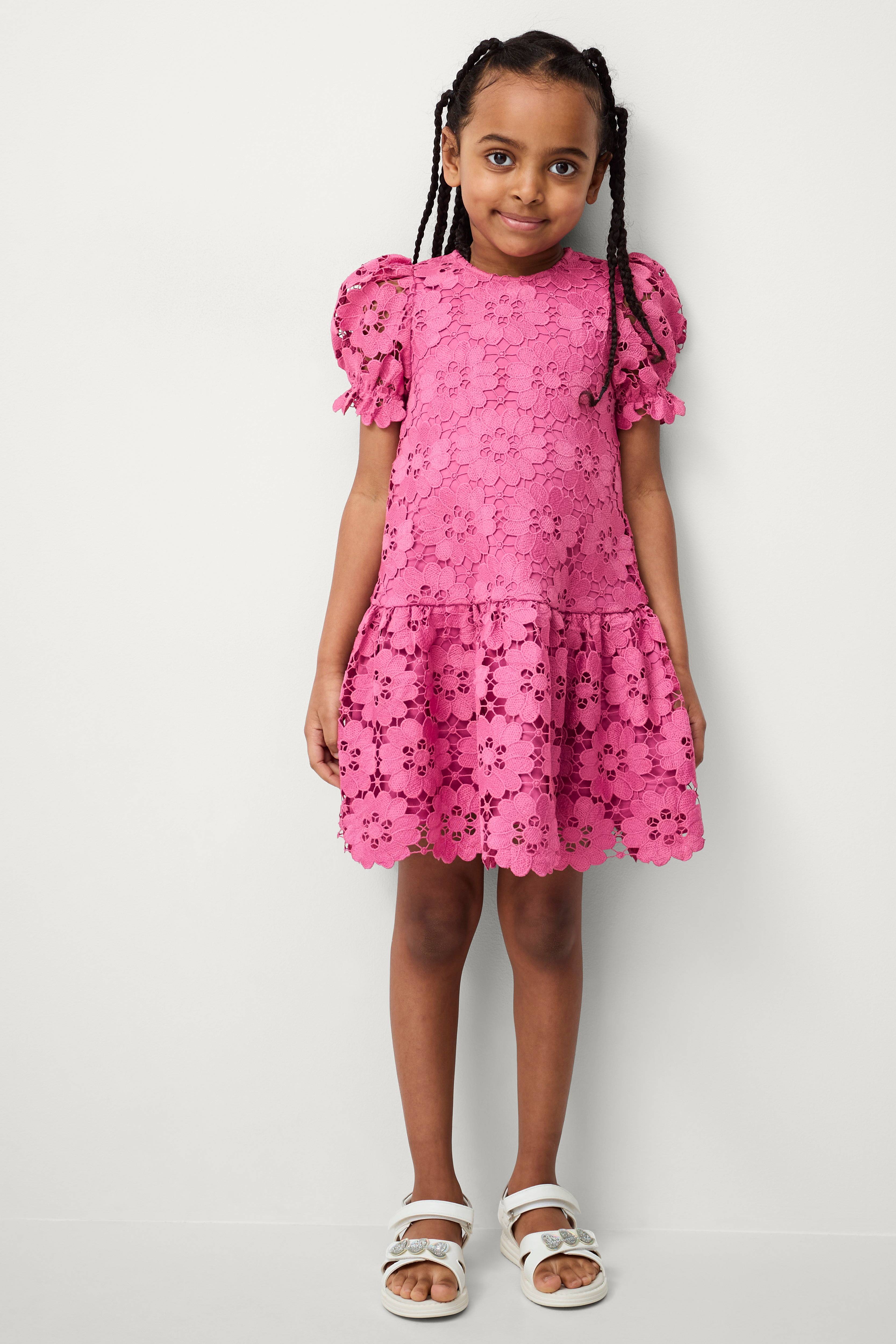 • Model med svaj• Korte ballonærmer• Skjult lynlås i ryggen• Trikotfor