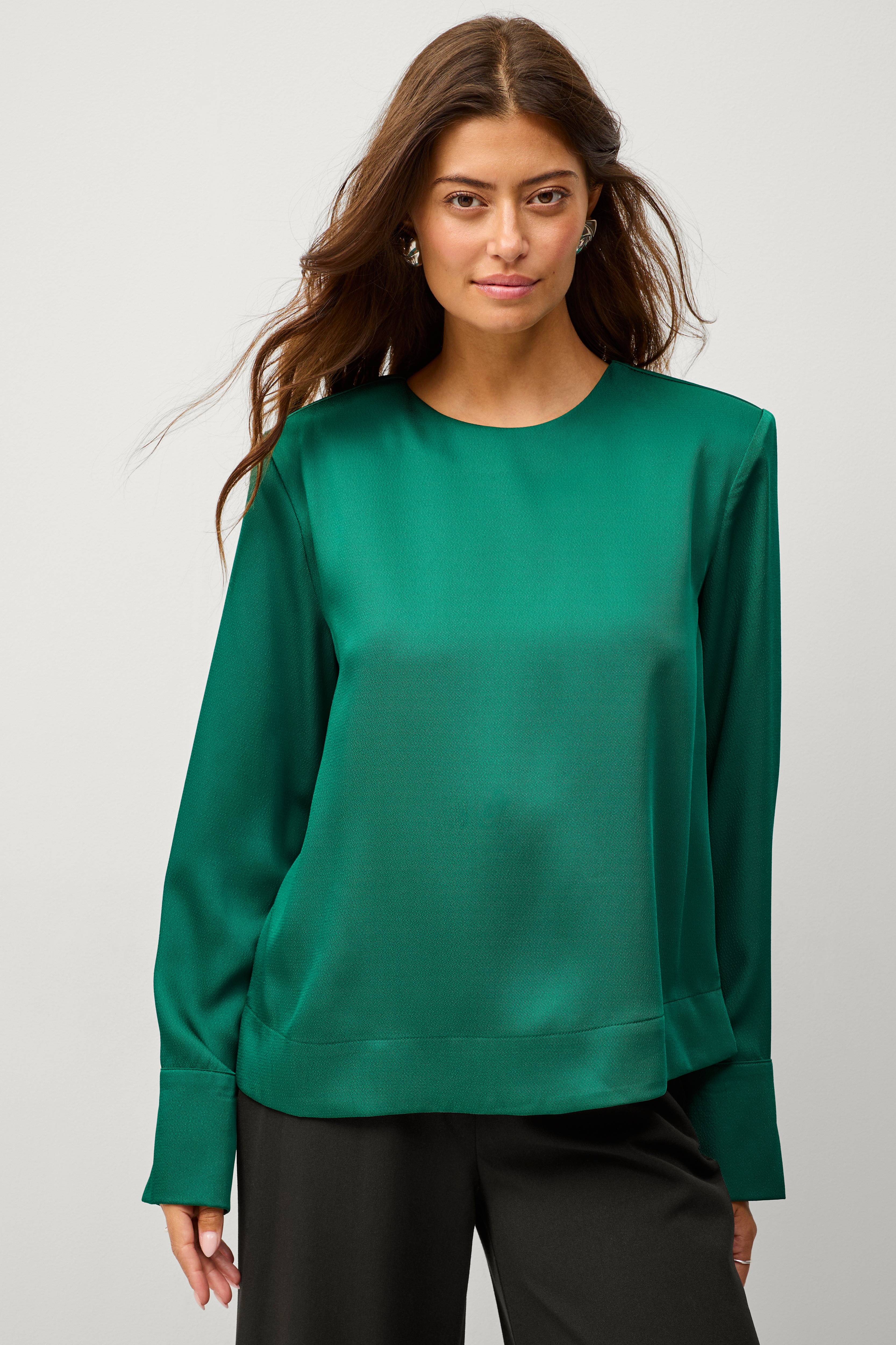Jeg kan godt lide det tidløse enkle design, og at stoffet har lidt glans. Jeg plejer ofte at bruge str. L, men den var for stor, str. M blev god.