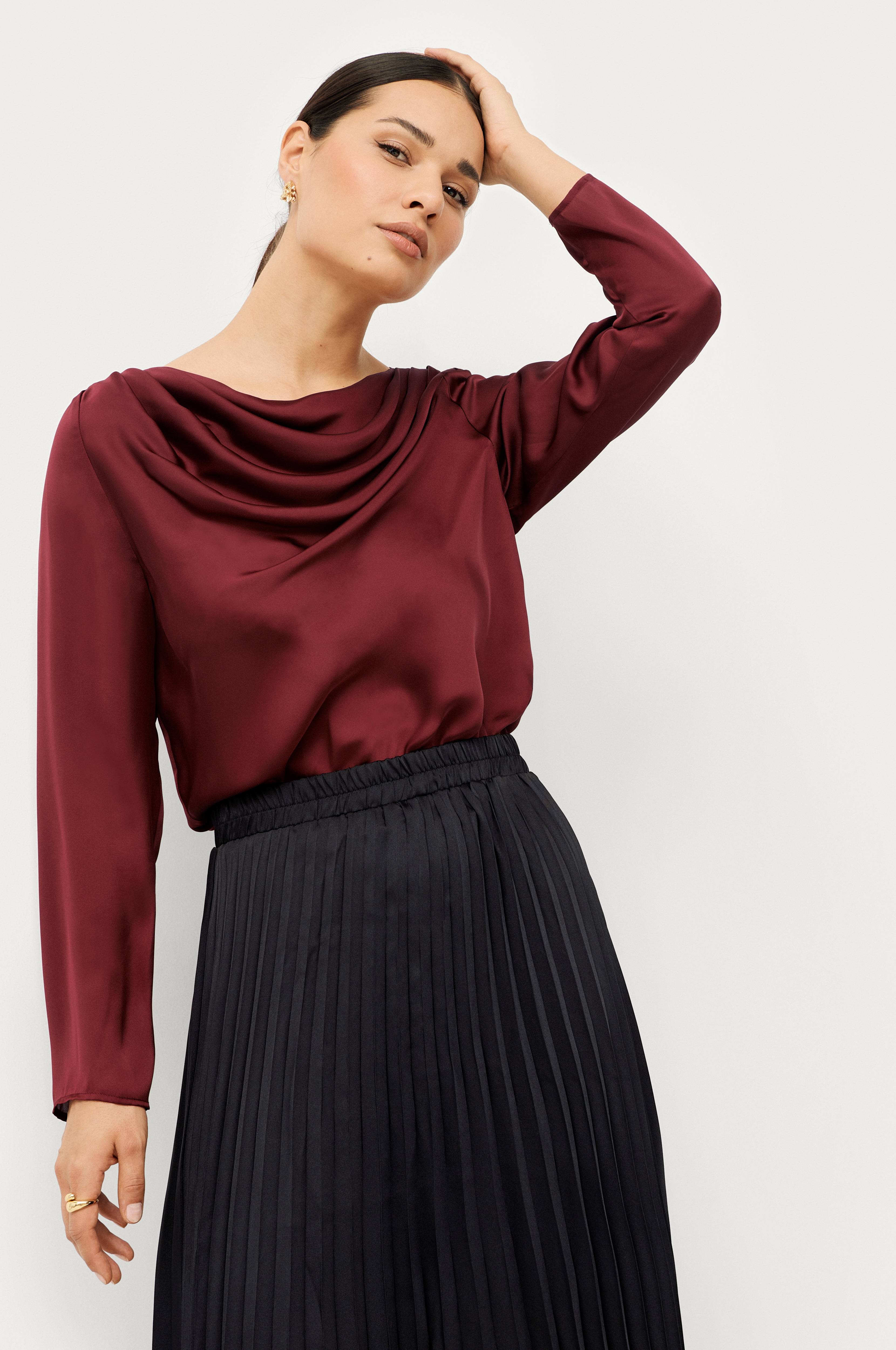 Blusen ser meget flot ud og materialet er flot. Men, uheldigvis, virkelig underlig pasform. Tog min sædvanlige størrelse og over brystet sidder den pænt, me…