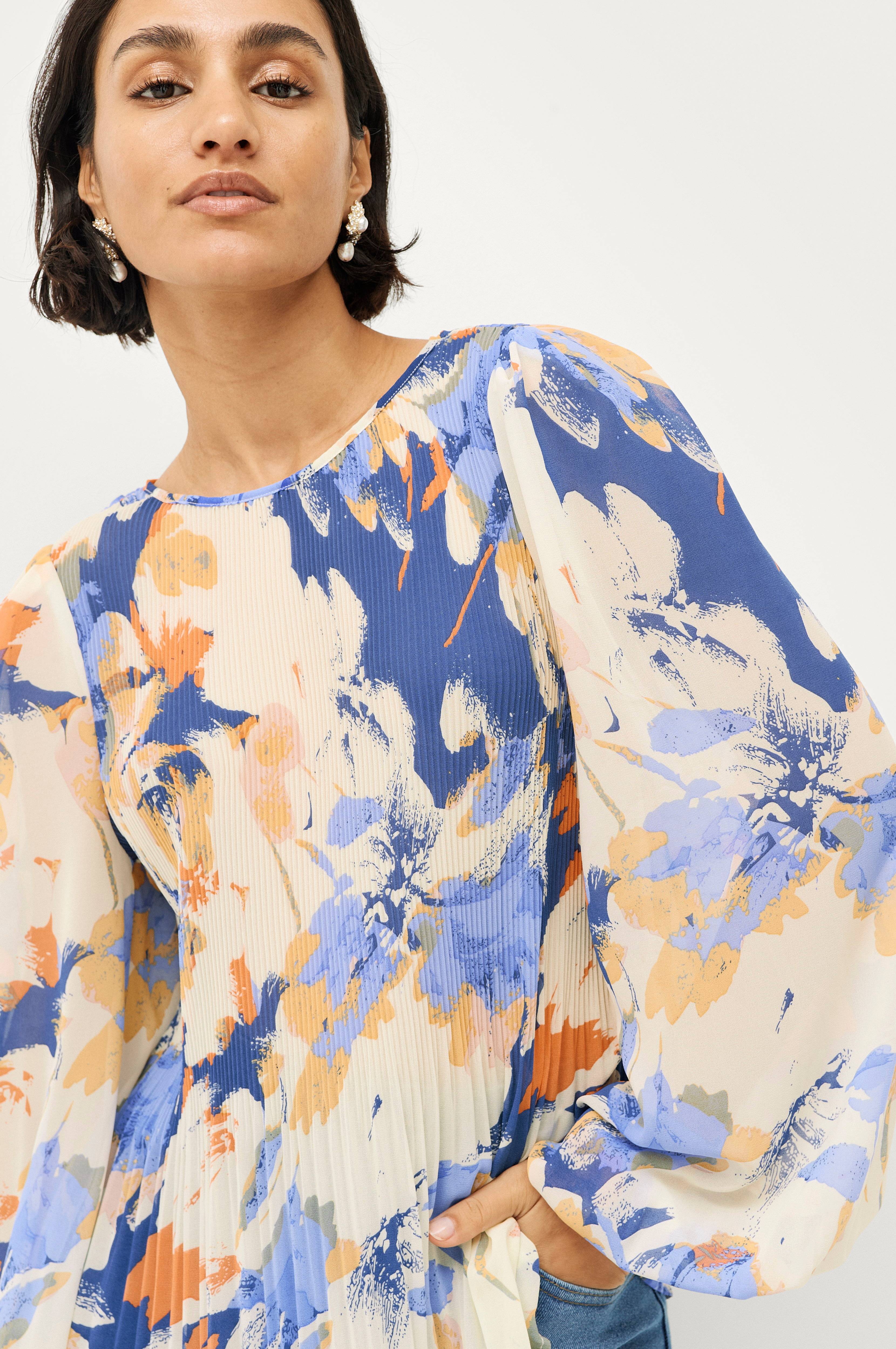 • Semitransparent materiale med printet mønster• Plissé ved fronten og bagpå• Ballonærmer med elastisk bånd ved manchetterne• Rund halsudskæring• Længde: 61 cm i størrelse 34/36