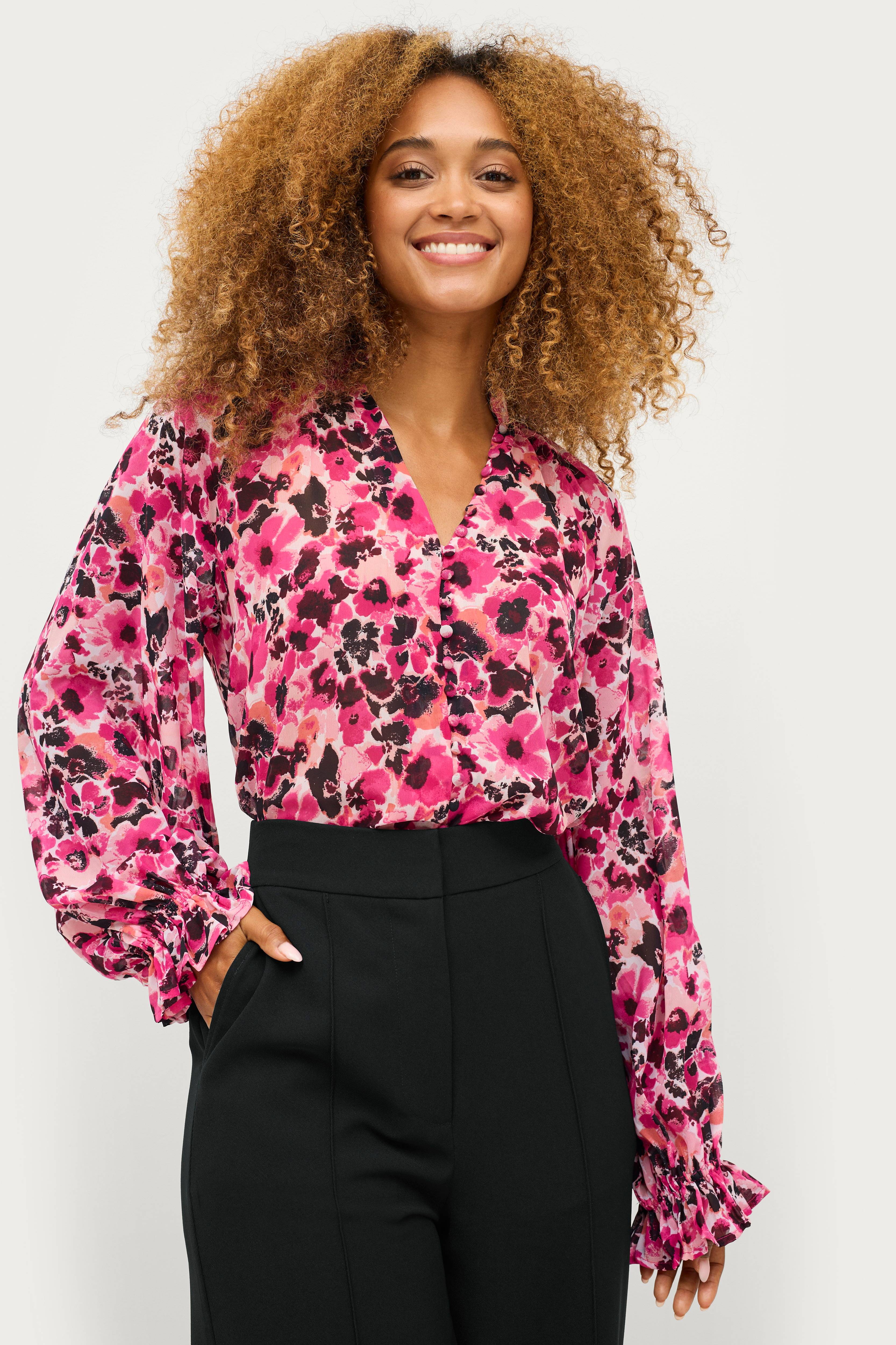 • Transparent bluse i chiffon • V-udskæring • Knapper foran • Ballonærmer med volant ved manchetterne • Længde: 65 cm i størrelse 34/36 • Produktet indeholder genindvundet materiale, som genbruges for at reducere mængden af affald samtidigt med at der ikke anvendes nye ressourcer.