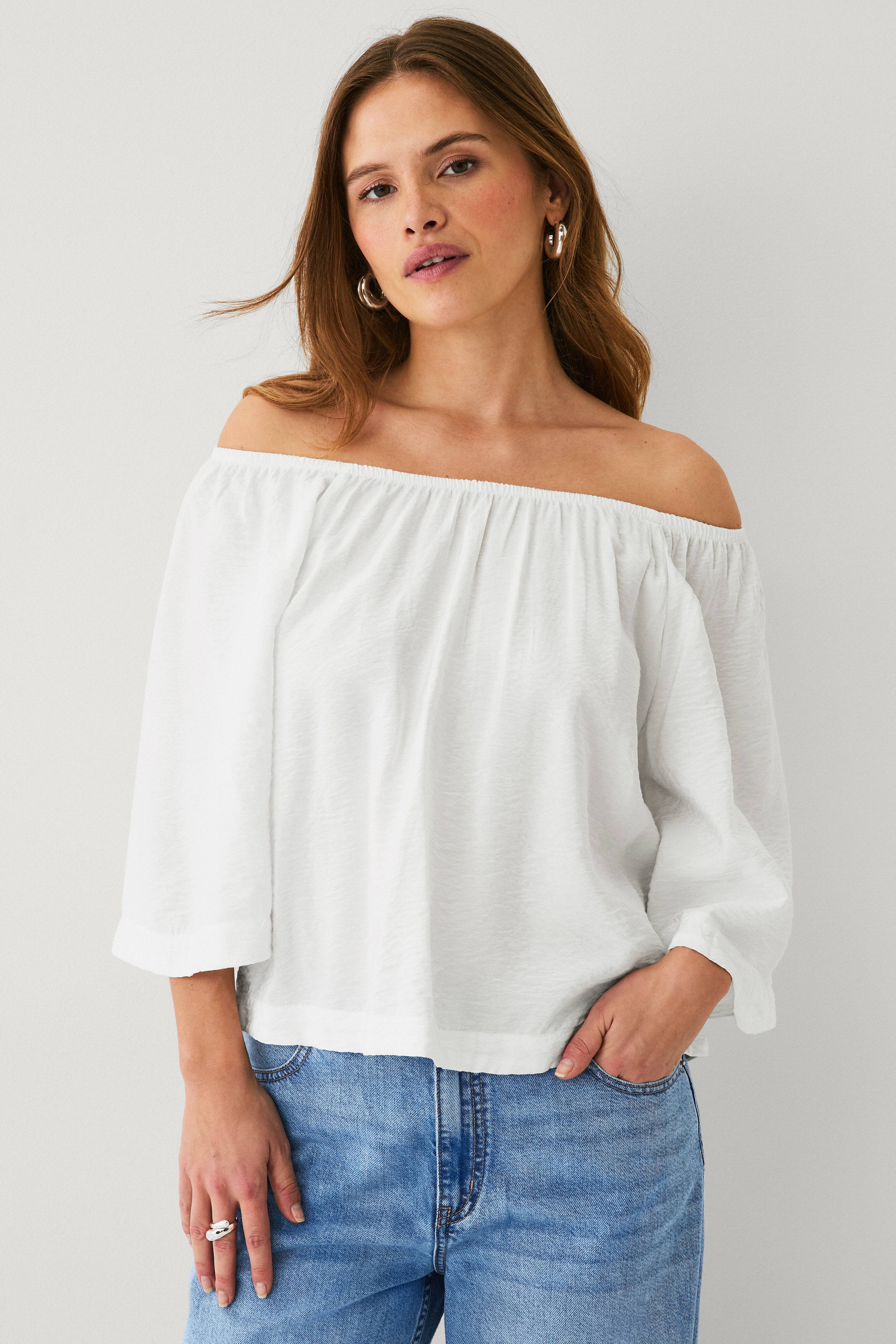 • Bluse i tynd viskoseblanding med printet mønster• 3/4 lange, brede ærmer med nedsænkede skuldre• Elastisk hals, der kan bæres som off-shoulder• Længde: 55 cm i størrelse S