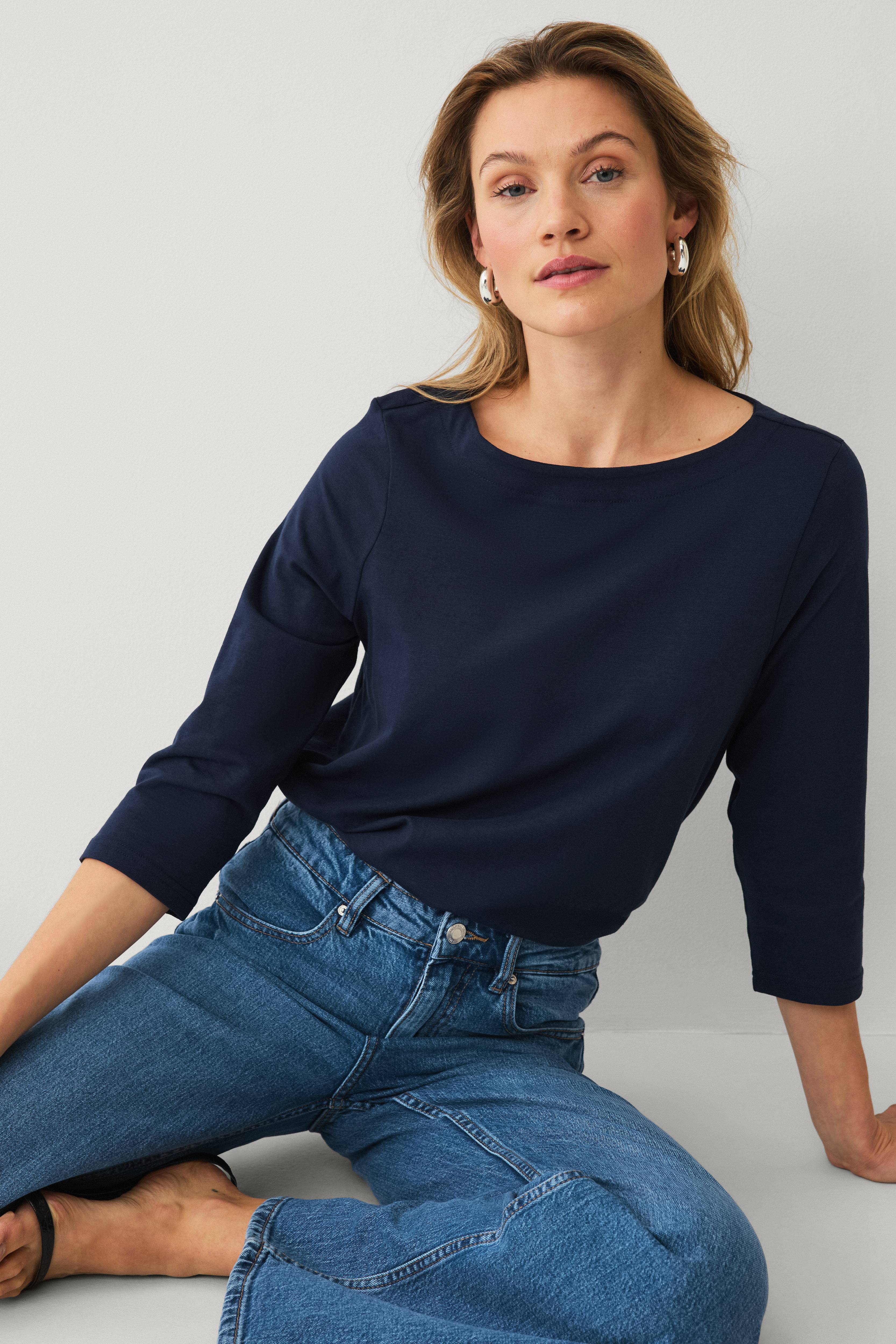 Ellos Top i bomuld med bådudskæring