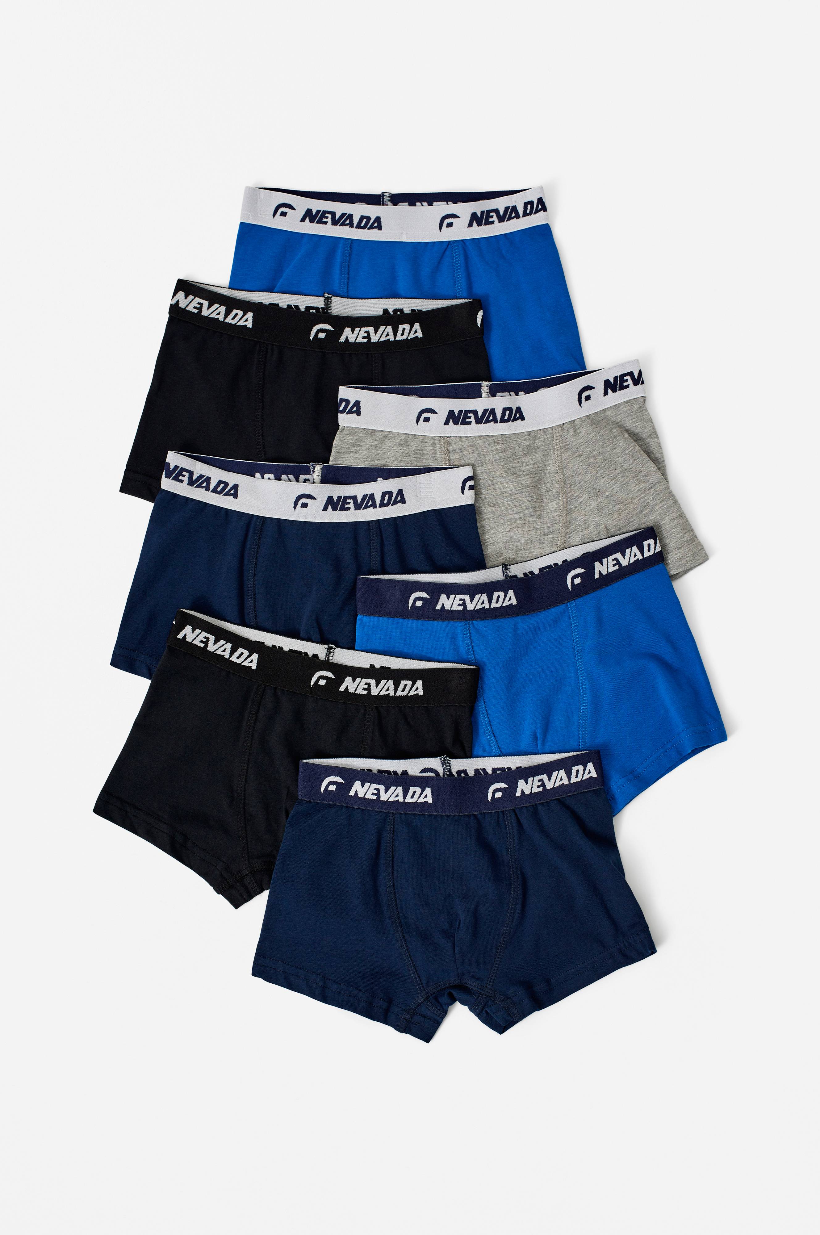 Boxerunderbukser Mikael 7-pak i bomuldsjersey med bred elastik med tekst i taljen. Foret front.