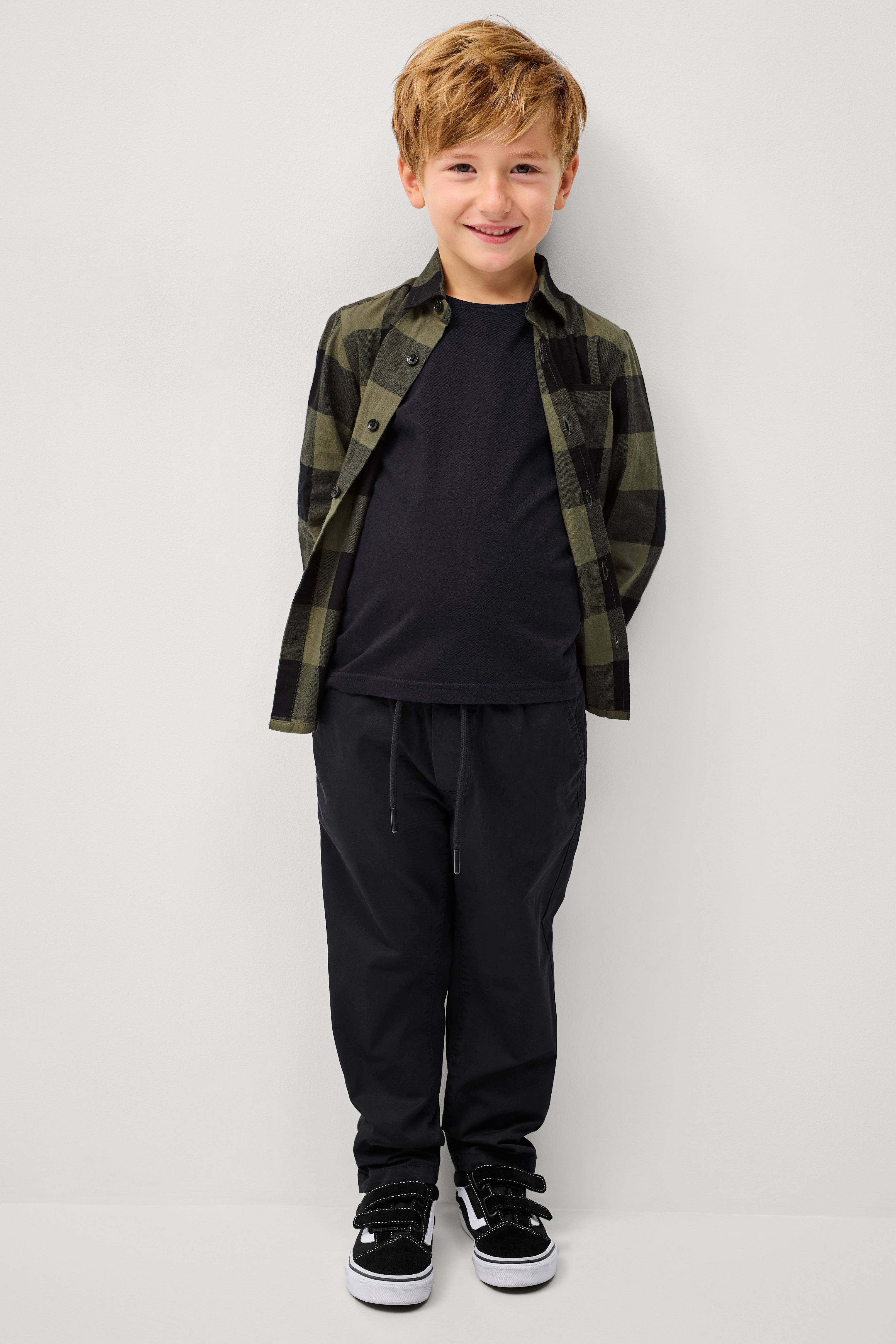 • Model i bomuldstwill• Linning med elastik og træksnørre• Lommer foran• Indlagte baglommer med knap