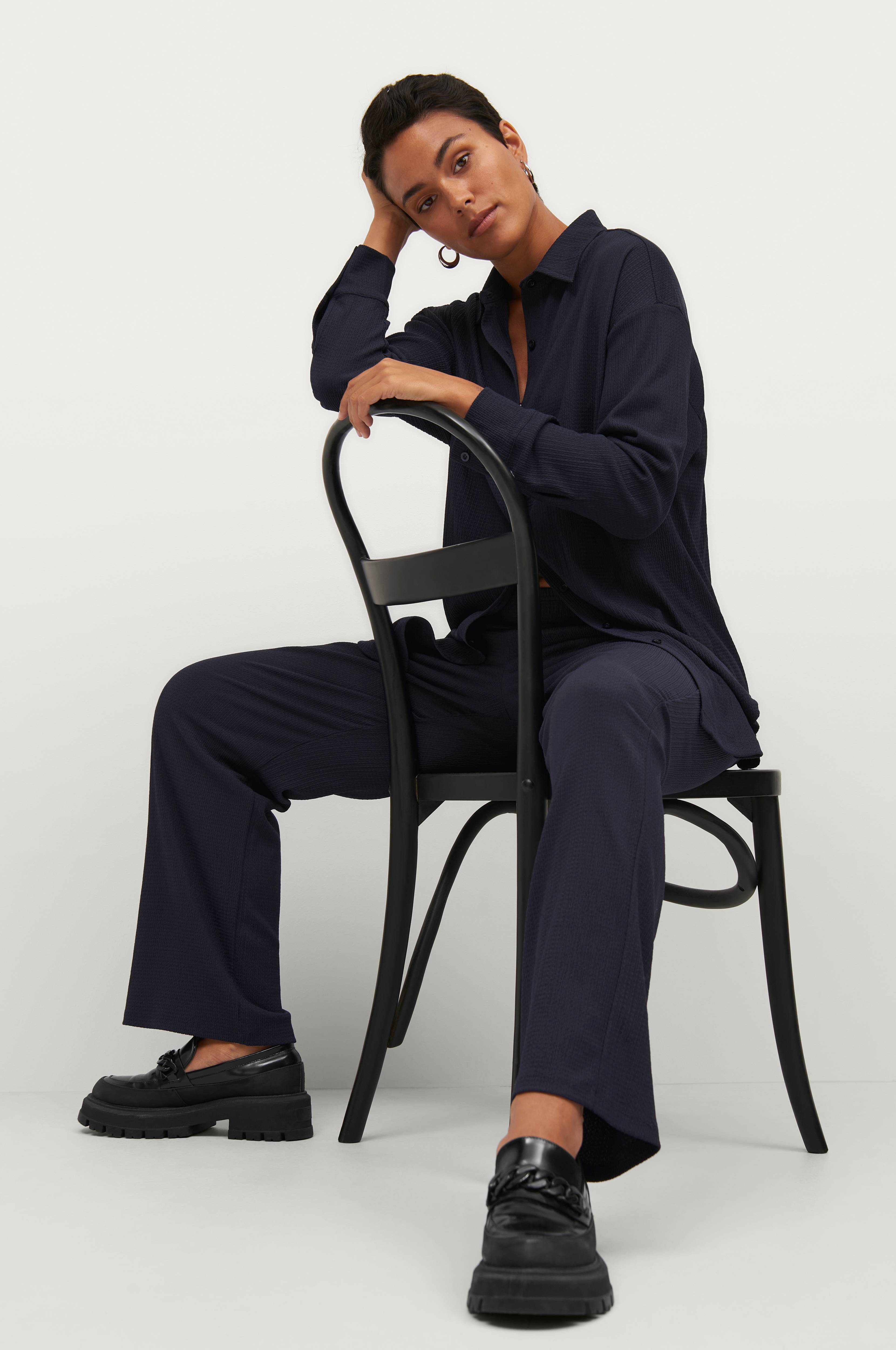 Dejlig afslappet, jeg bærer S som regel i bukser og er 166 cm, benene for lange/talje for høje, men vender fra taljen en gang ned, så er bare gode! Lommer lidt ubrugelige efter min mening i såd…