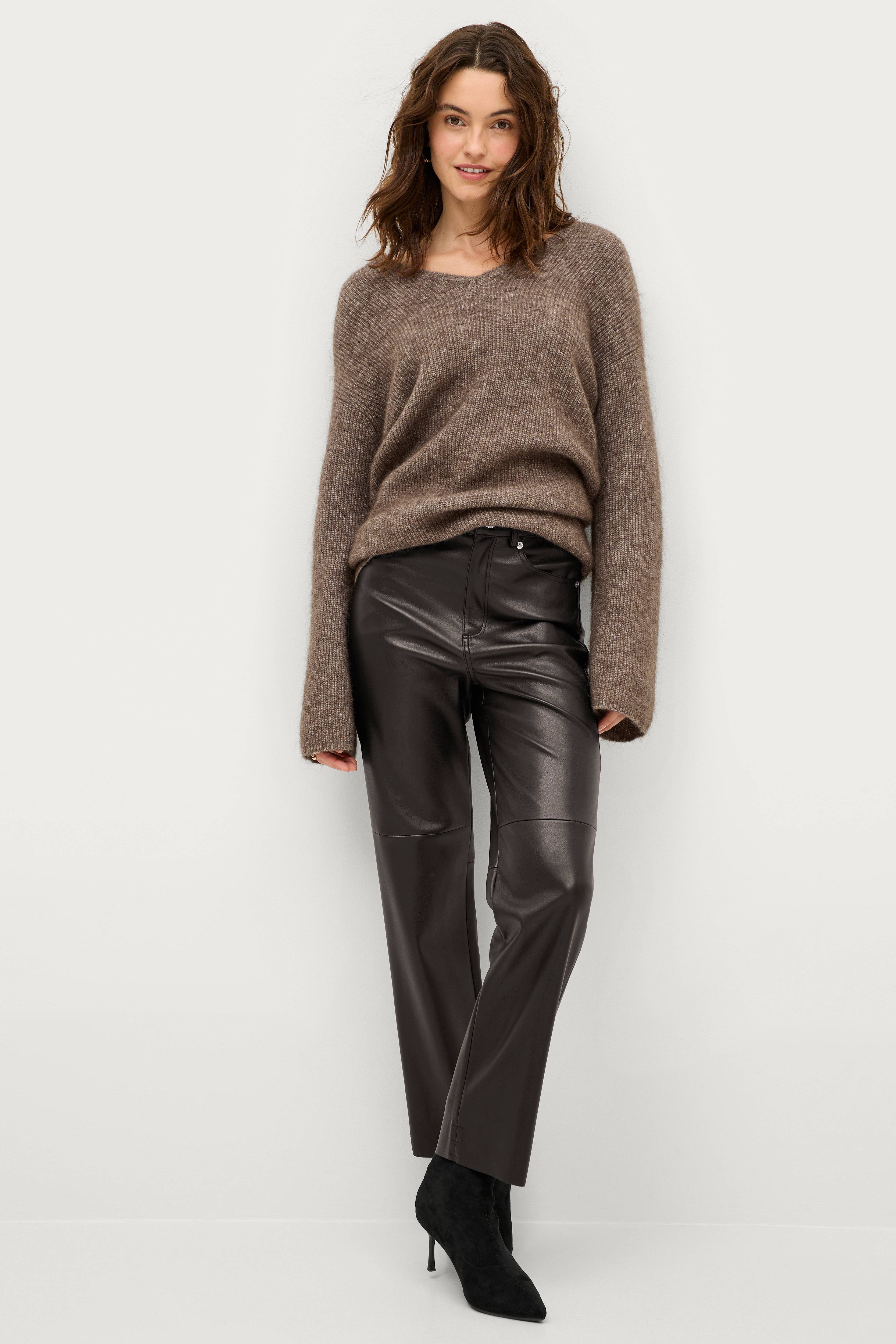 - Bukser i imiteret skind med blød inderside- Høj talje og lige ben- 5-lommemodel- Lynlåsgylp- Tre sømme nederst på benene, der gør det muligt at klippe bukserne til den ønskede længde. Det er vigtigt at klippe under sømmen, så den ikke går op.