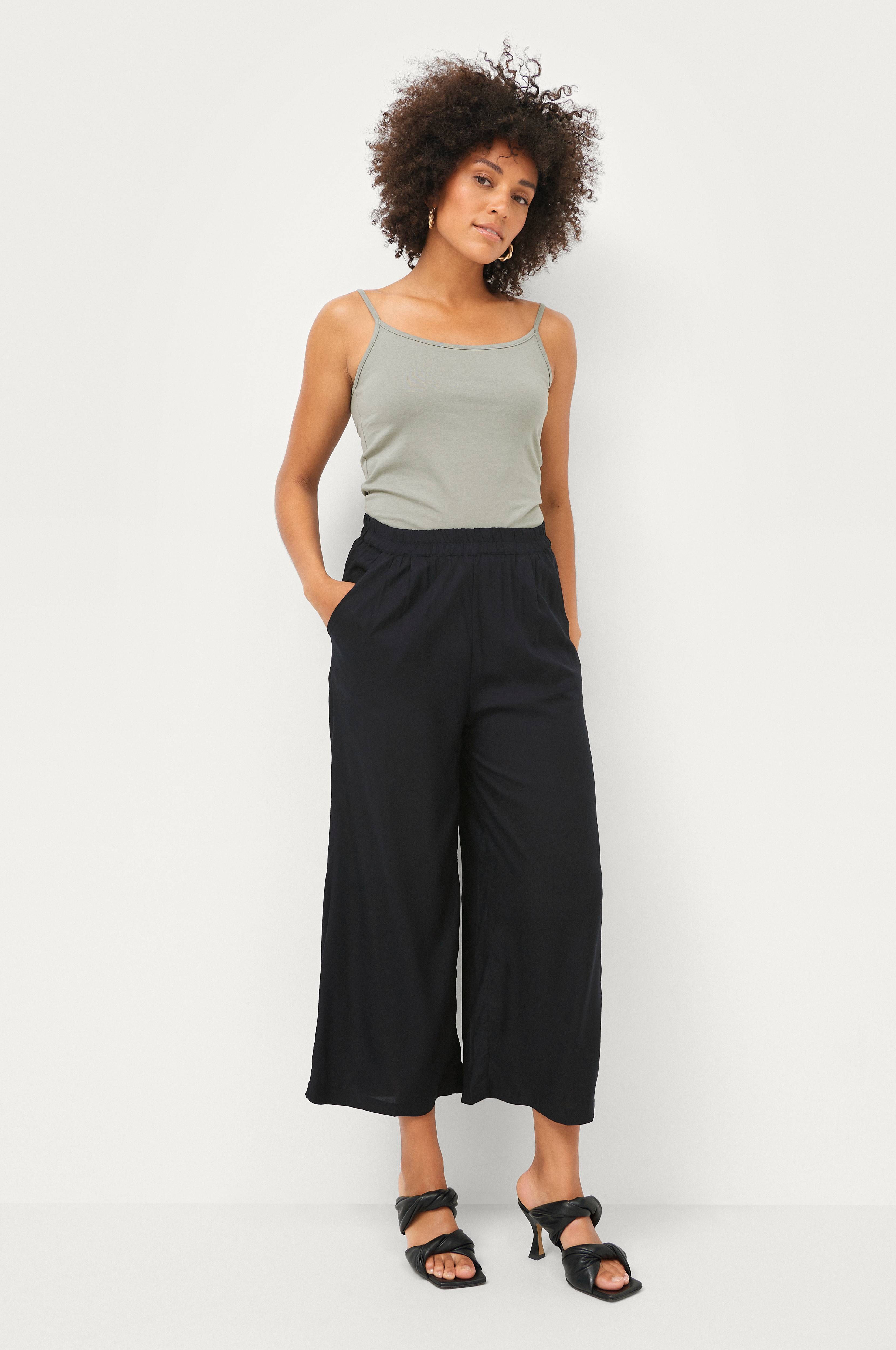 Vilt tynd klud. Bukserne er virkelig brede, men sidder godt i taljen og lander smukt. Sommernætter må være dejlige.