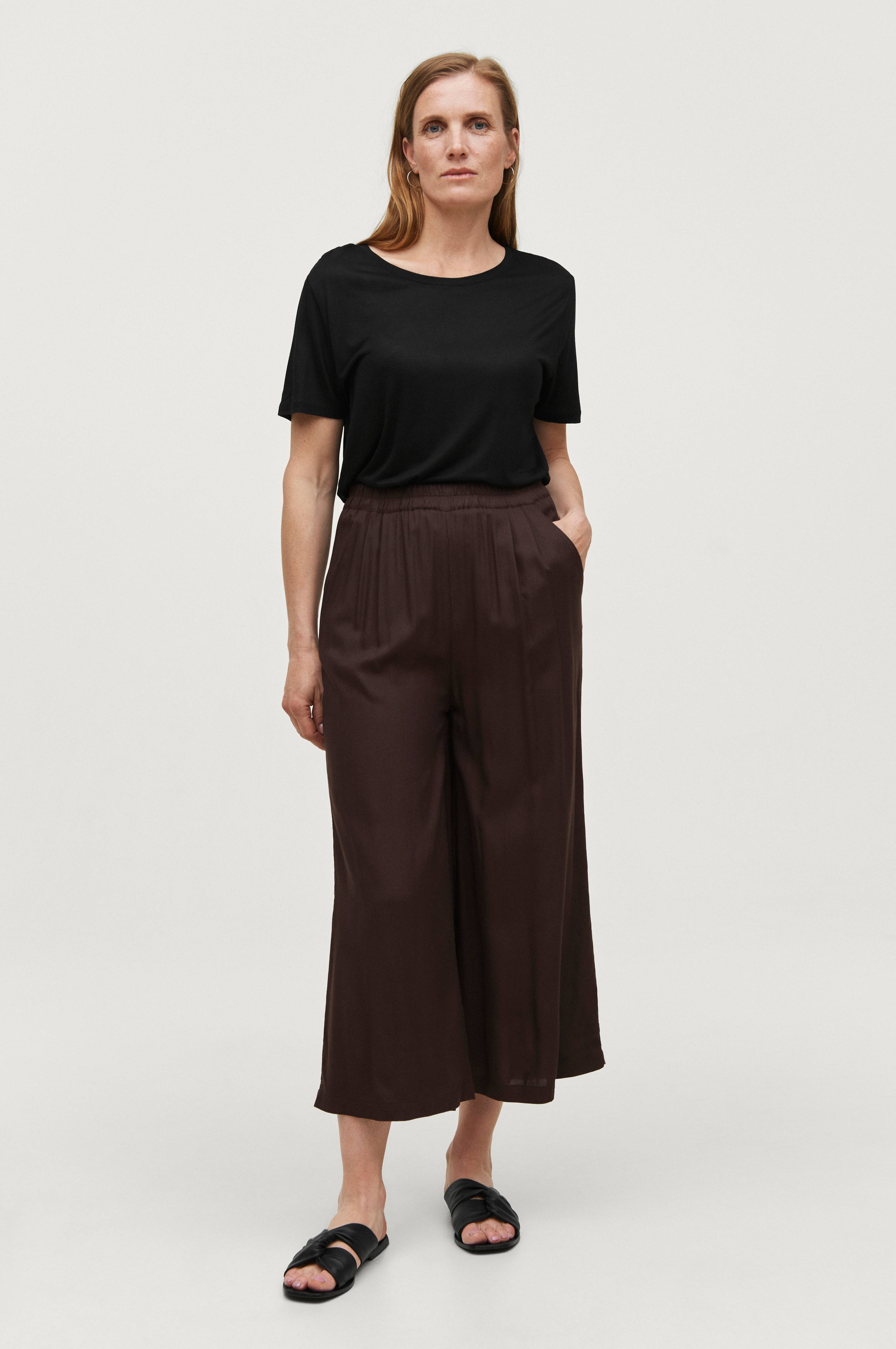 Vilt tynd klud. Bukserne er virkelig brede, men sidder godt i taljen og lander smukt. Sommernætter må være dejlige.