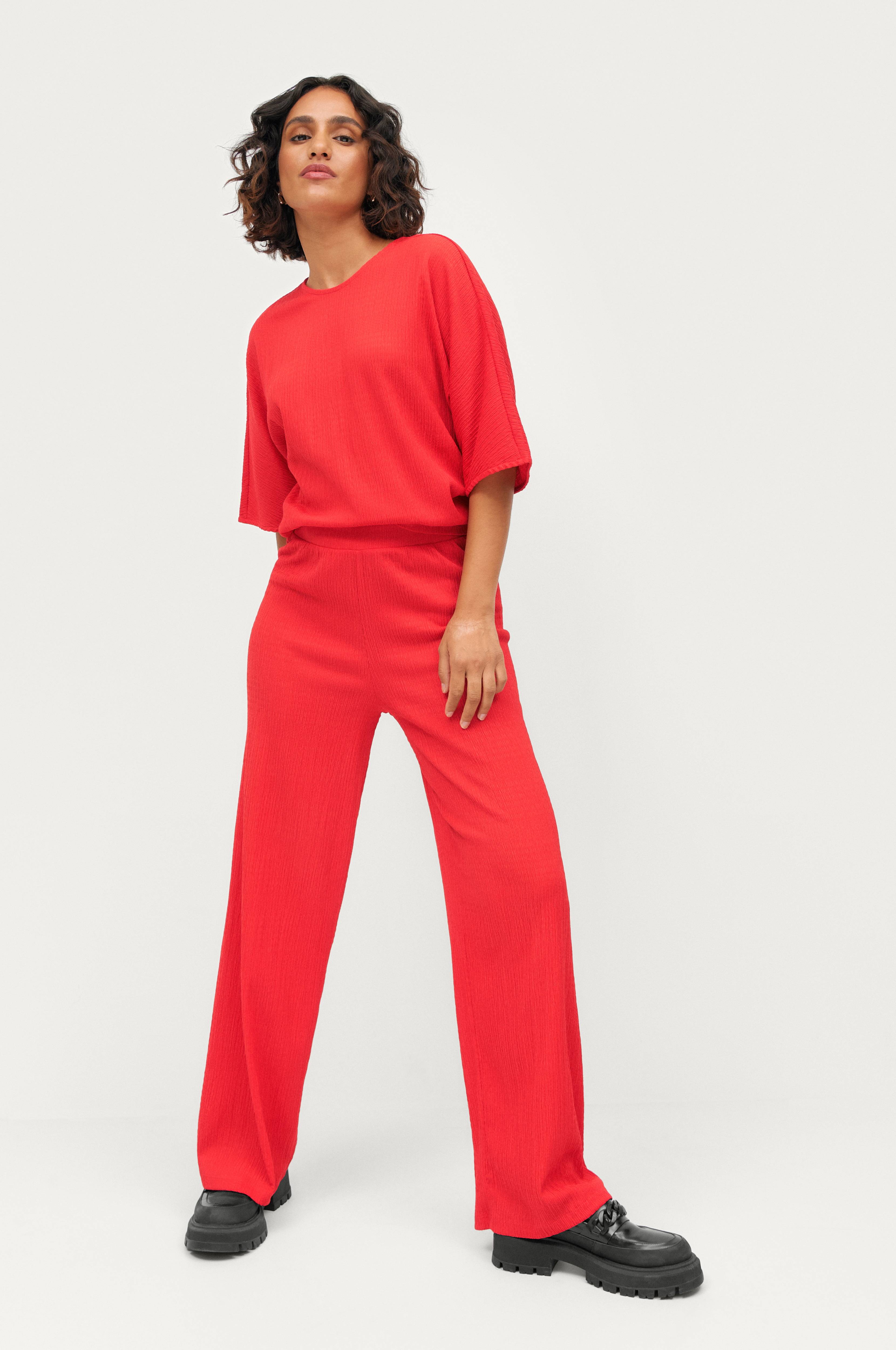 • Brede bukser med elastisk talje• Strækkvalitet med strukturmønster• Løs pasform