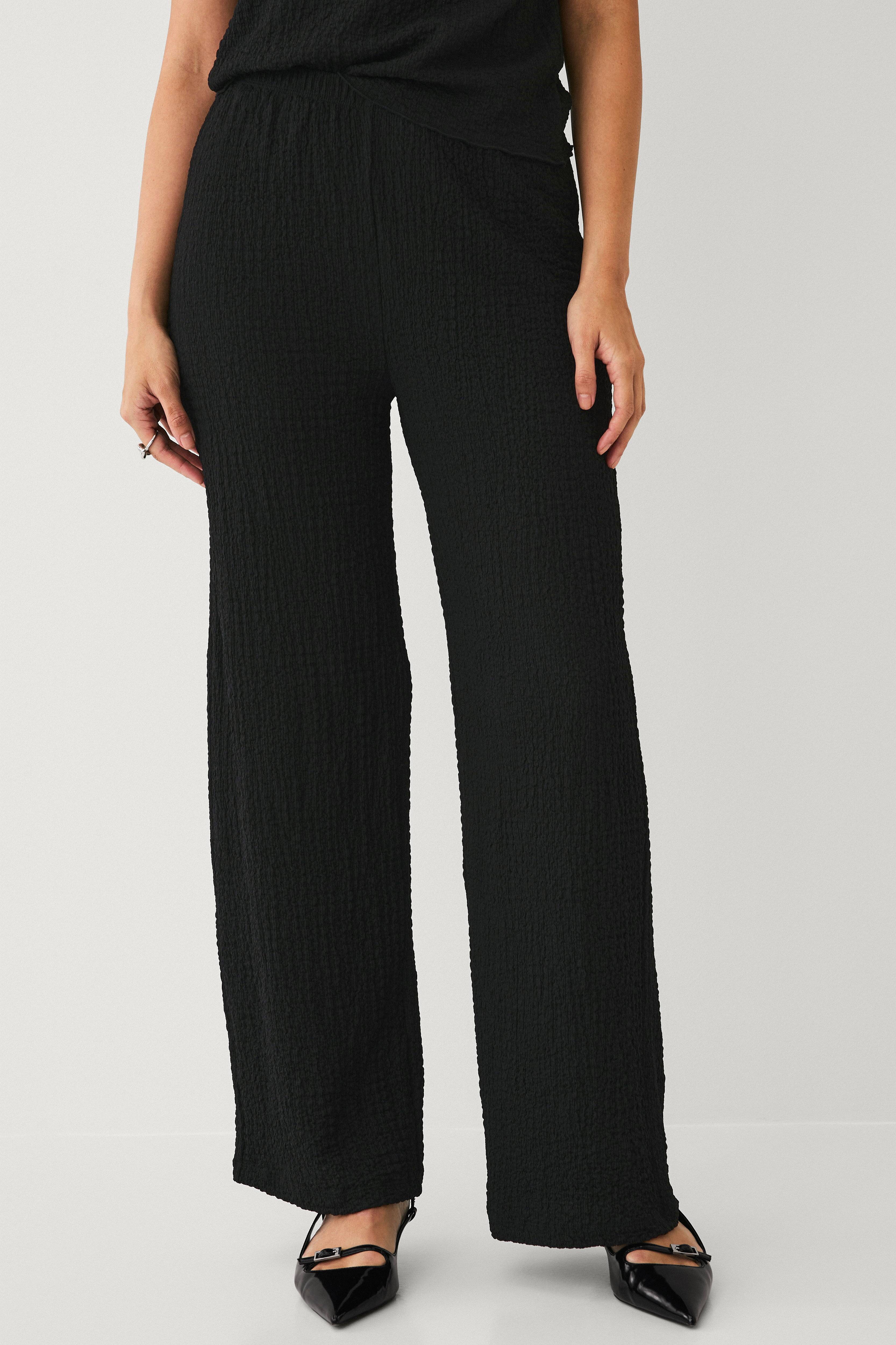 • Bløde bukser med afslappet pasform• Elastisk talje• Brede ben• Indre benlængde: 76 cm i størrelse S