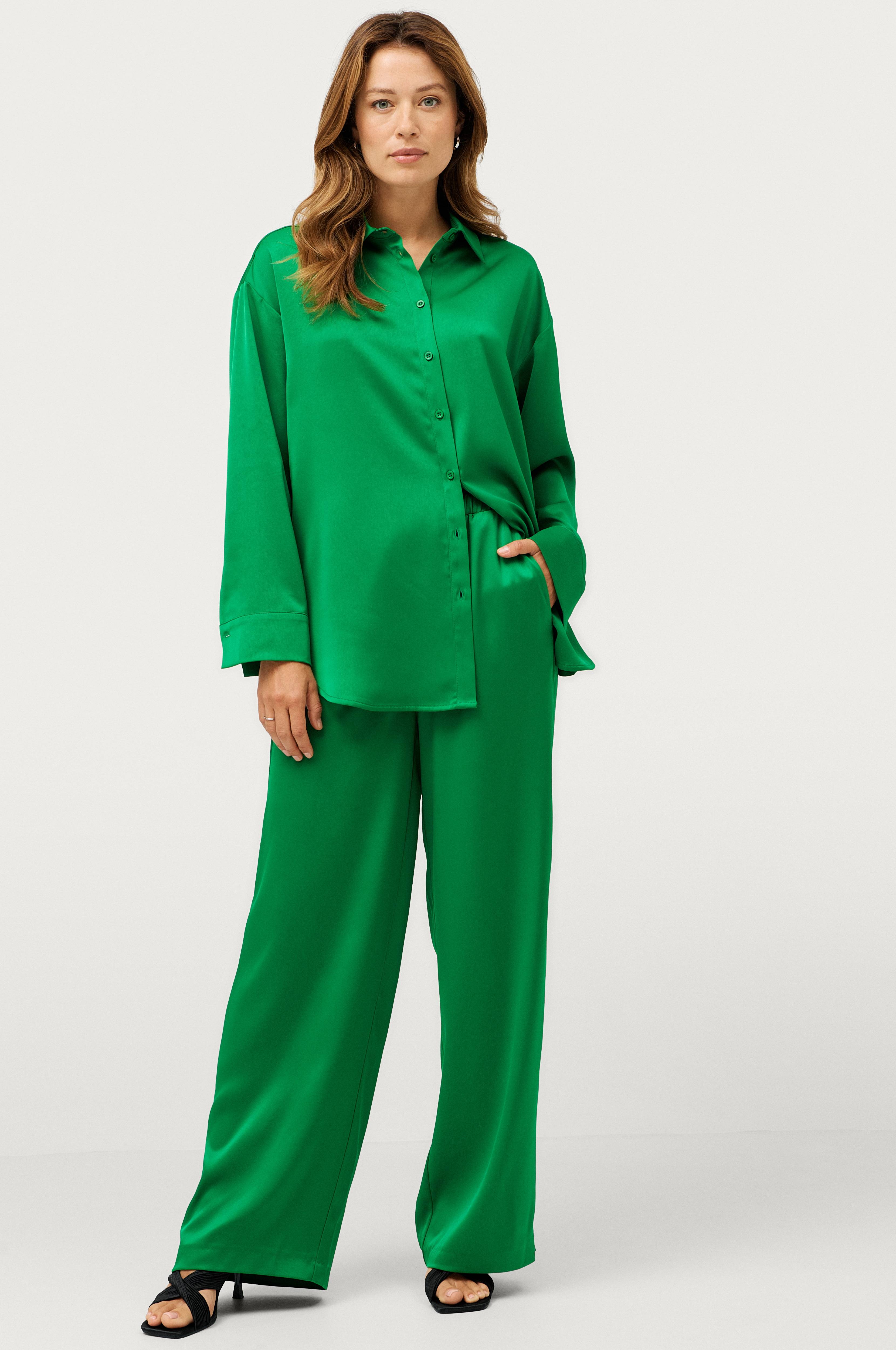 • Høj, elastisk talje• Brede ben• Lommer i siderne• Fremstillet af satin med glans