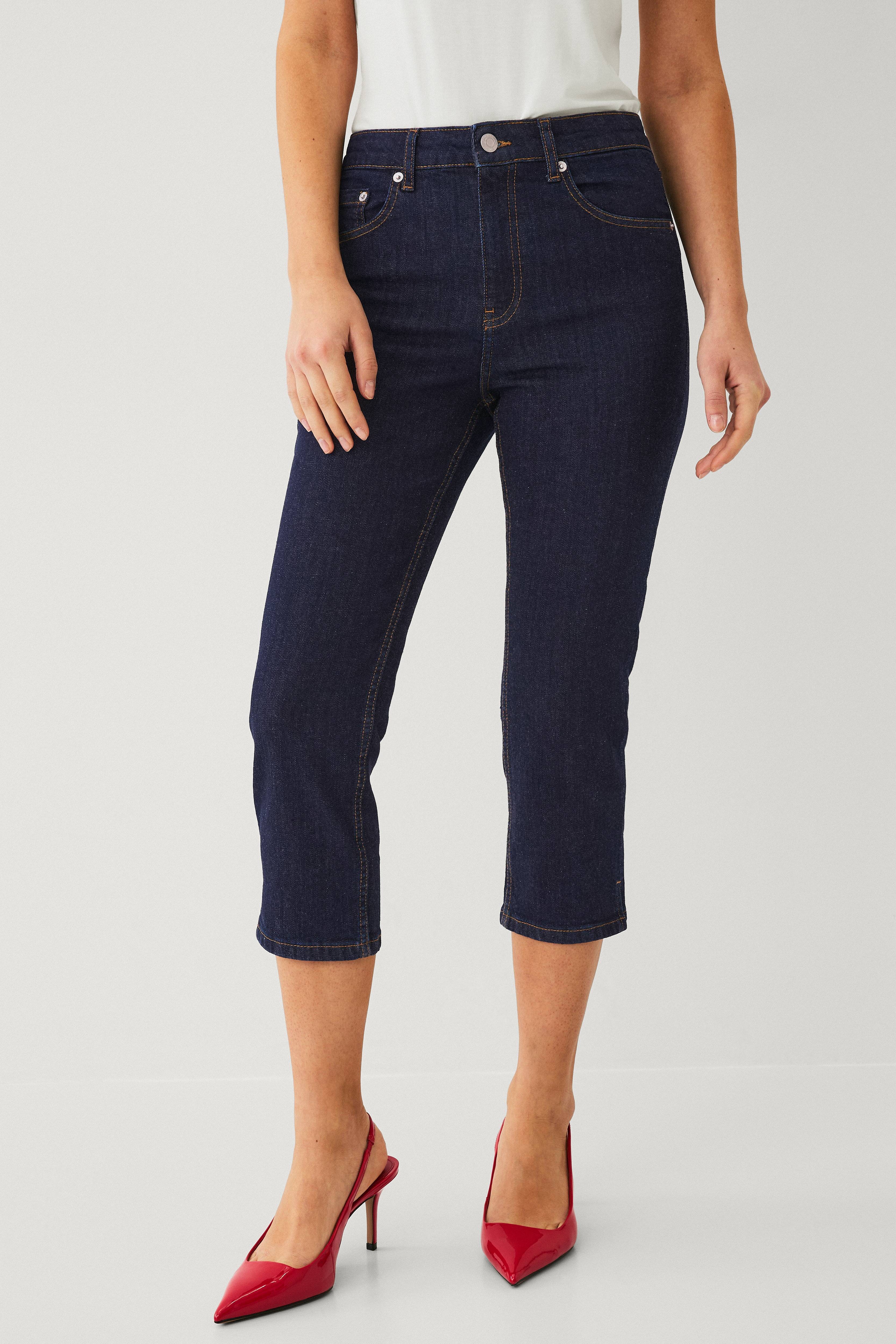 • Caprijeans med høj talje og lige pasform• Femlommemodel• Kort slids nede i siderne• Lukning med gylp med lynlås og sølvfarvet knap• Benlængde: 56 cm i alle størrelser