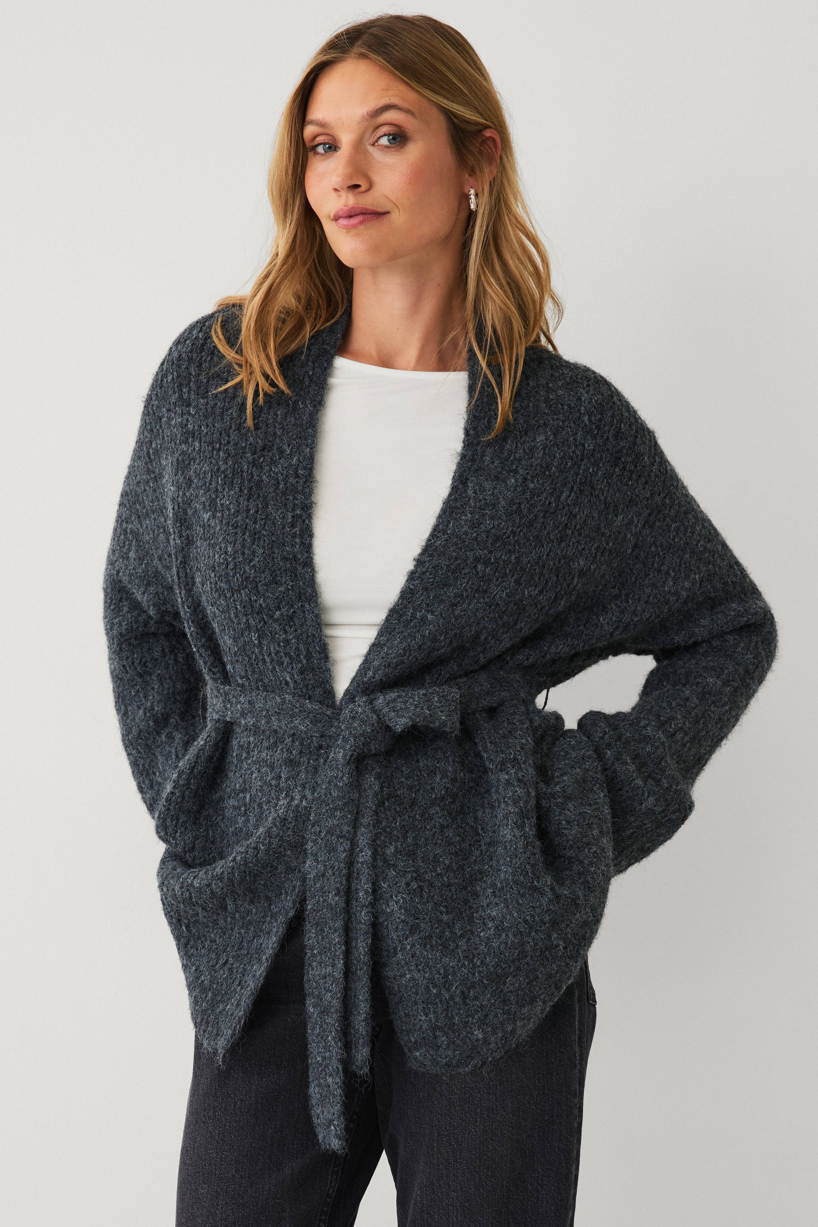 Tyk og hyggelig cardigan, perfekt når vejret er koldt. Farven er virkelig flot, kold meleret gråbeige. Jeg synes, den bliver lidt klodset på mig, som er rund, ellers ville det have været en fe…